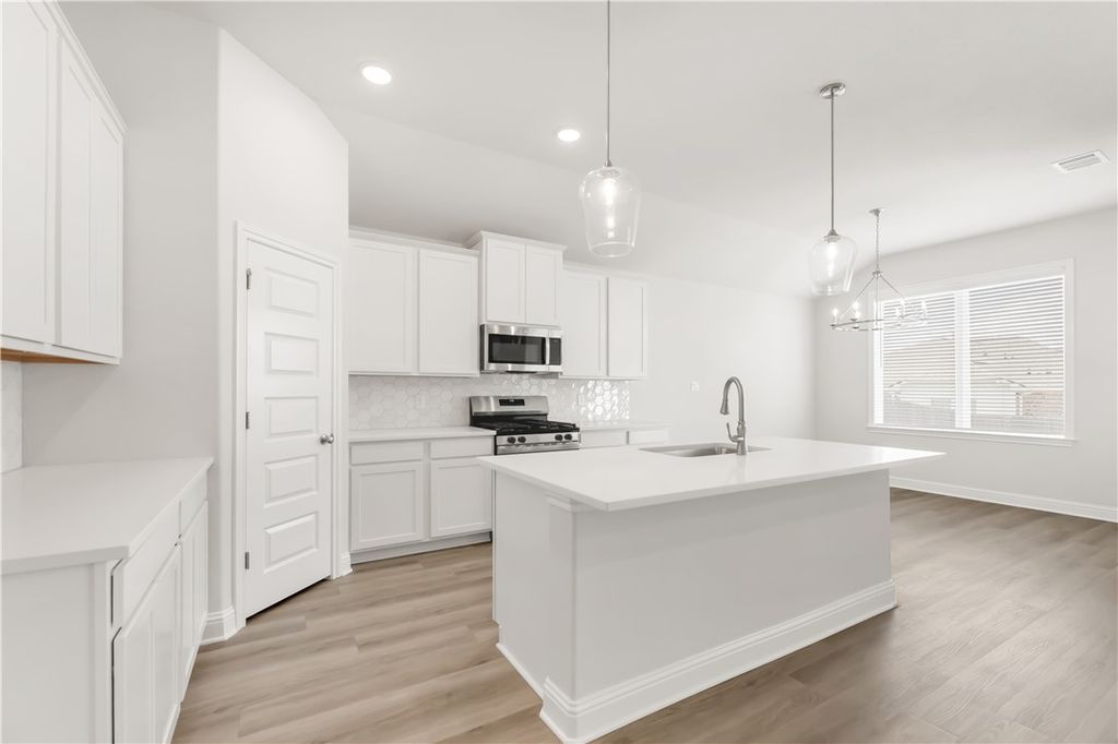 Welcome to 6204 Southern Cross Drive in the desirable Southern Pointe community! Four bedroom SMART home! Walk into a grand foyer where natural light draws you into the family room, dining room, and designer kitchen. Featuring soft close 42 in. cabinets, a large pantry, stylish backsplash, and stainless steel appliances, this kitchen boasts storage and style. This floor plan features three bedrooms with a shared bathroom and a secluded and expansive primary suite on the other side with an oversized closet. All four bedrooms have ceiling fans, LED disc lighting, large closets, and lots of natural light. Feel comfortable anywhere in the home with smart homes features including a smart thermostat, Ring door bell, and smart locks and lights. Welcome home!