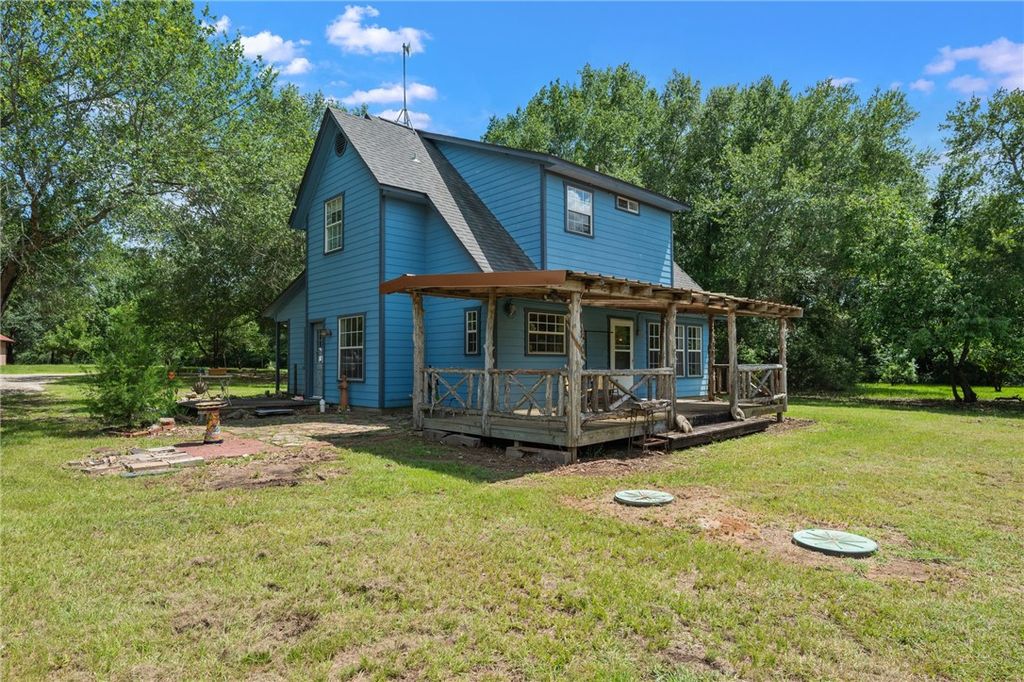 Welcome to your very own country haven, where serene lake views, fresh air, and peaceful privacy surround you on every side. Nestled on a wooded 5-acre lot in Bryan ISD and just 20 minutes from Texas A&M, this beautifully updated farmhouse offers an ideal blend of rustic charm and comfort. This 1,784 sq ft home features 3 bedrooms and 2.5 baths, with a thoughtful layout designed for easy living. The primary suite is located on the main floor, complete with a private bath for convenience and seclusion. Upstairs, two bedrooms are connected by a Jack-and-Jill bath, making them great for children or guests. Step into the inviting kitchen, where a farmhouse sink, stainless steel appliances, a cozy breakfast area, and freshly painted cabinets create a space that's both functional and full of charm. A private study offers a great work-from-home spot or flex room, while the adorable half bath tucked under the stairs adds character and convenience. Enjoy peaceful mornings and cool evenings on your covered back deck or shaded patio, surrounded by towering trees and scenic views. There's room to garden, space to roam, and even a 16x24 powered wood shed - great for hobbies, storage, or a workshop. The home has been well maintained with major updates already done for you: roof, HVAC, and exterior paint all replaced in 2019. This is more than just a property, it's a lifestyle. Step into this hidden oasis where you can unplug, unwind, and reconnect with nature.