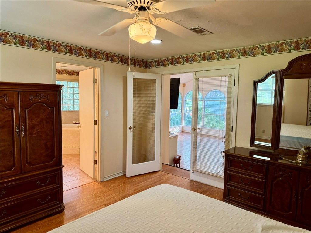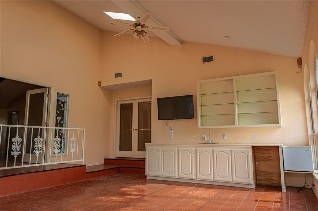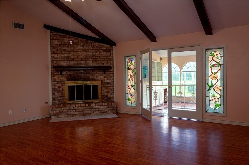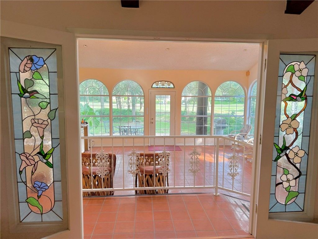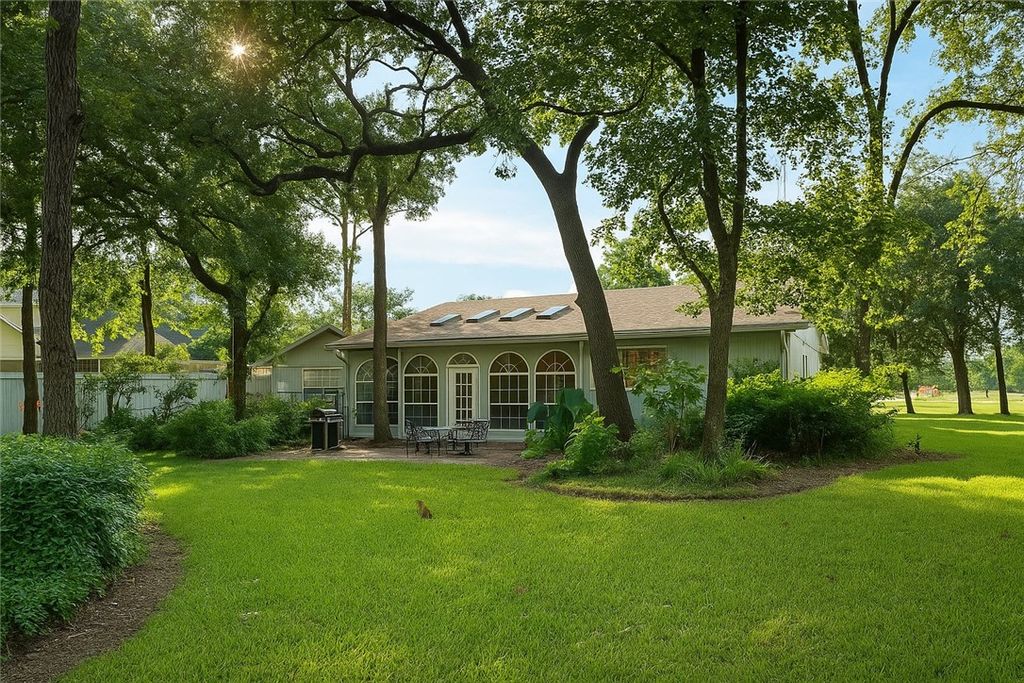 Positioned directly on the tee box of the golf course, this spacious home offers over 2,800 square feet and a front row view of the game. The location provides a rare vantage point where you can watch golfers tee off while enjoying the peaceful setting of the course. One of the standout features of the home is the expansive sitting and entertaining room, surrounded by walls of windows that fill the space with natural light and frame the golf course view. Stained glass accents add character, creating a warm and inviting space for gathering with friends or simply relaxing while watching the activity on the course. Inside, the home offers numerous bedrooms that provide flexibility for guests, hobbies, or office space. The kitchen sits at the heart of the home and offers plenty of room for everyday cooking as well as hosting family and friends. Additional features include a garage, a storage shed, and ample space throughout the home. With its generous square footage, unique layout, and premier golf course location, this property offers a great opportunity to enjoy life along the course in Hilltop Lakes.