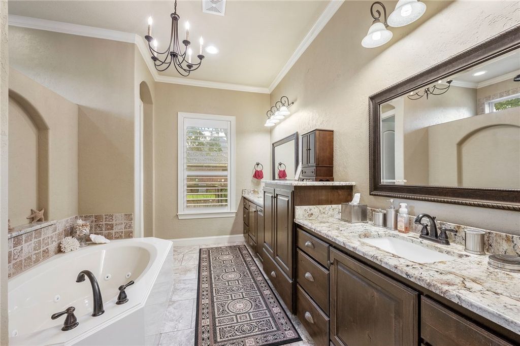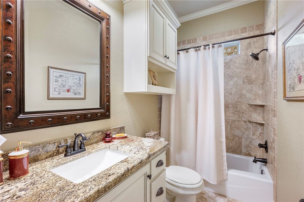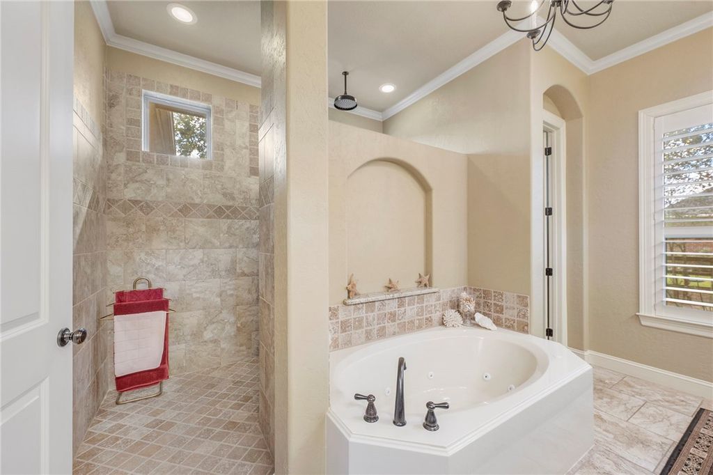 Immaculately maintained and cared for this stunning custom built 4 bedroom 3 bath home sits on a 1+ acre shaded lot in the sought after Williams Creek Community. Stunning finishes include extensive use of stone, custom wood detailing and plantation shutters throughout. The floor plan flows nicely with formal dining and study just off the entry. The living room, kitchen and breakfast area feature raised ceilings with cedar beams, large center island with extensive bar seating, stone fireplace, and oversized windows with views of the beautiful wooded back yard with in ground pool, hot tub, stone waterfall, outdoor kitchen, and cedar pergola for added outdoor entertainment. The master bedroom also enjoys views of the back yard, features an en-suite spa bath with double vanities, large walk-in shower, and a large master closet that flows nicely into the laundry/utility room. The front yard is beautifully landscaped to compliment the home's rustic but elegant exterior finish, the cul-de-sac is quiet with only 7 homes along the drive and the location just minutes from area amenities. This is truly PEACE and QUIET, CONVENIENCE, and LUXURIOUS COMFORTS all in one place - Come home to 4906 Ginger Court!