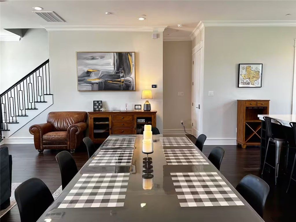 Experience modern living in the heart of College Station with this stunning three-story townhome, perfectly situated near Texas A&M University and local conveniences. This 3-bedroom, 3.5-bath residence combines contemporary design, quality craftsmanship, and thoughtful details throughout. The second floor serves as the main living space and showcases a beautifully designed kitchen featuring high-end stainless steel appliances, a gas range, apron-front sink, and a large island with bar seating. The open layout flows seamlessly into the dining area and spacious living room, where built-in cabinetry and elegant French doors fill the space with natural light. Upstairs, the third floor includes a generous guest suite with an ensuite bath, a conveniently located laundry room, and a luxurious primary suite. The primary bedroom features dual closets and an impressive ensuite bathroom with double vanities, a soaking tub, and a beautifully tiled walk-in shower. Additional highlights include: Reverse Osmosis water filtration system Integrated Control4 smart home system (master bedroom, first-floor bedroom, and second floor) Added security system EV charger in garage This property offers the perfect blend of modern comfort, functionality, and location "” an exceptional opportunity in College Station's sought-after market.