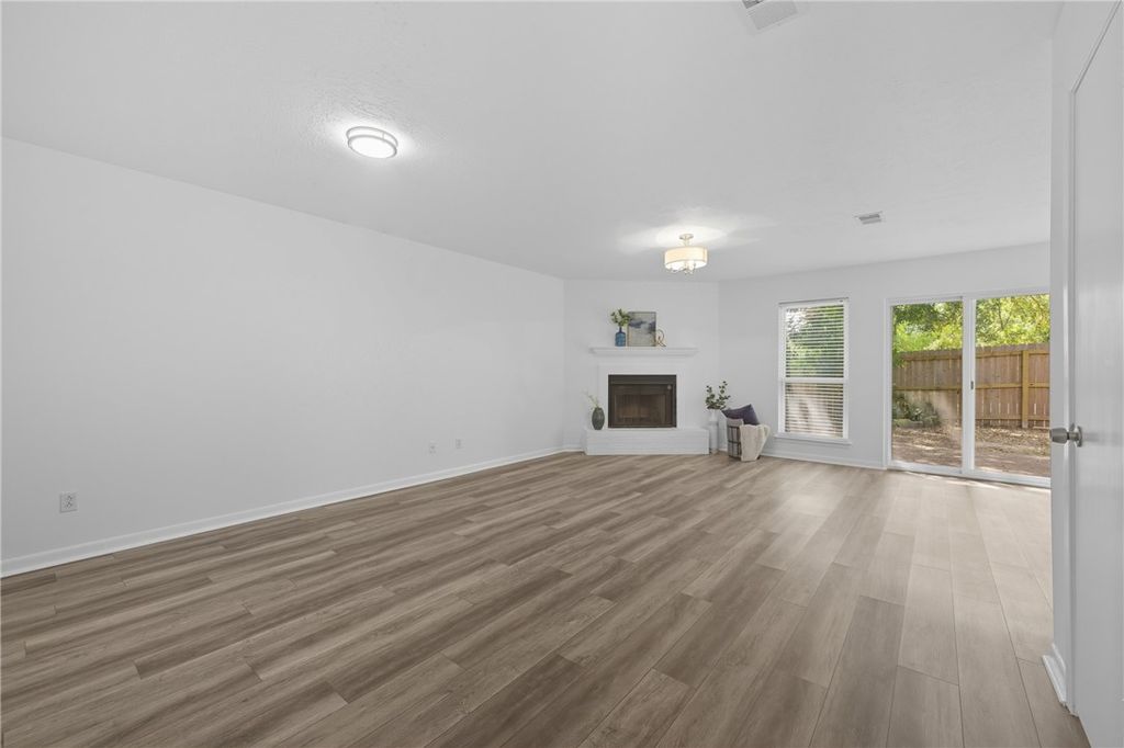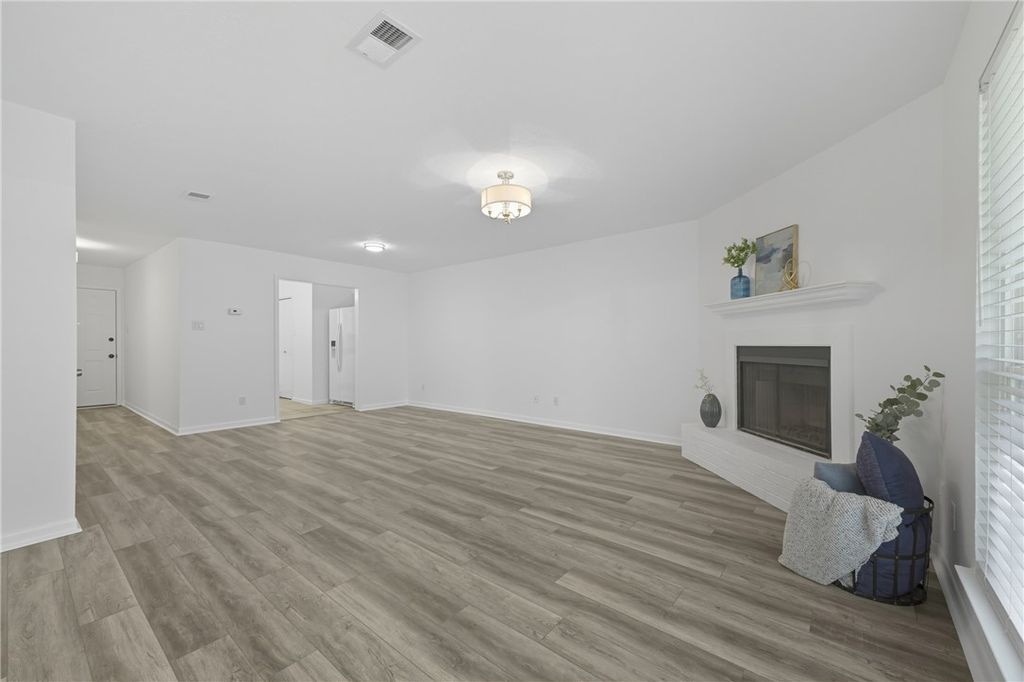 Looking for the perfect blend of style and convenience? Step into this updated one-story townhome featuring 2 spacious bedrooms and 1 bathroom with two separate vanities. Inside, you'll find a fresh, modern look with new hard-surfacing flooring in the living rooms and bedrooms and freshly painted walls throughout. The living room is spacious with a brick fireplace to give the home that cozy feel. The kitchen comes equipped with granite counter tops, refrigerator, electric stove and more! Right off the kitchen is the laundry area that comes with full sized washer and dryer. The 2 bedrooms are good-sized with a jack and Jill bathroom set up. The two car carport and extended driveway is great for having friends/family over. There is also a storage shed under the carport.