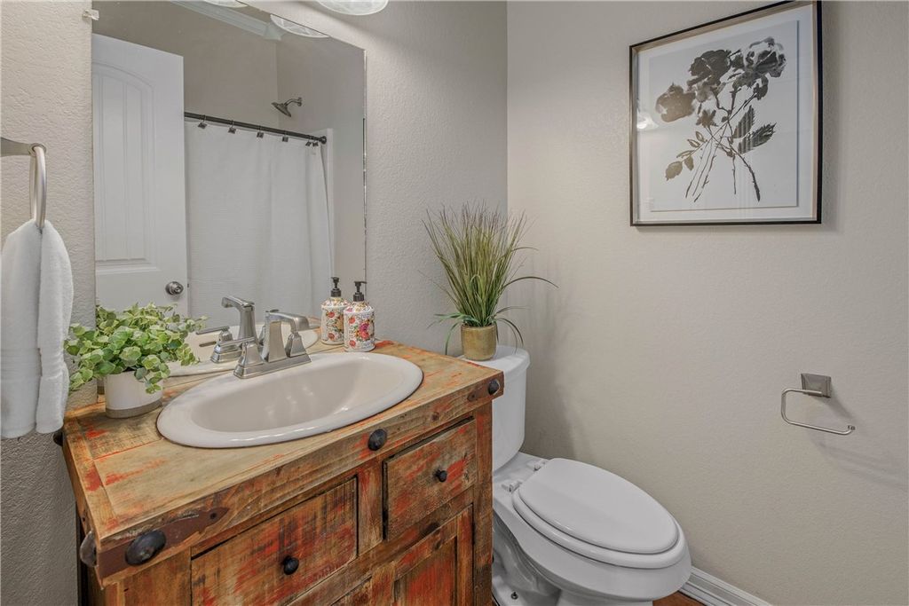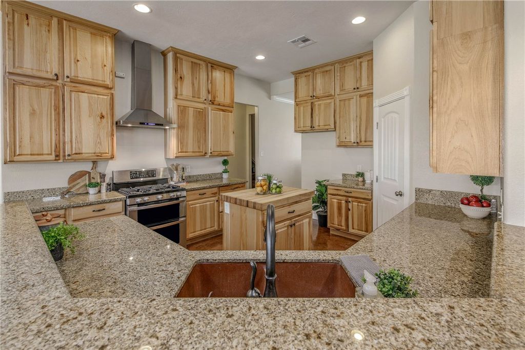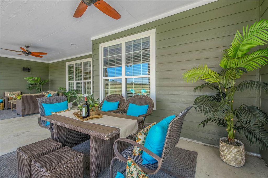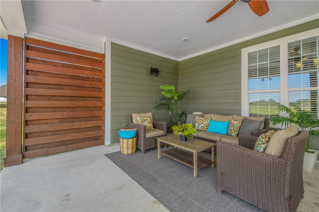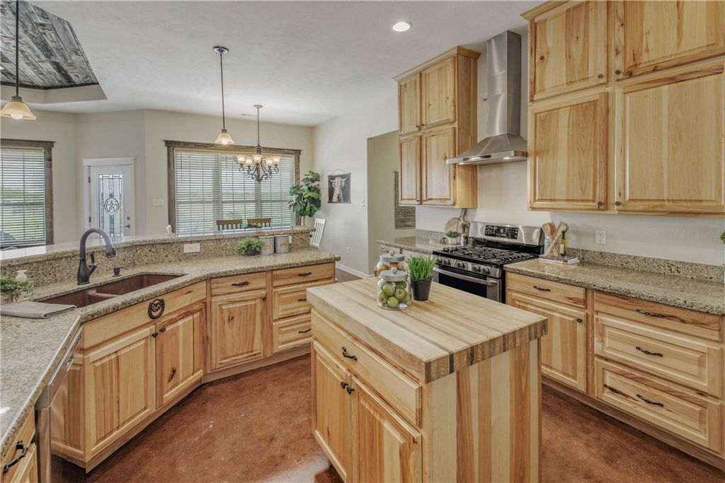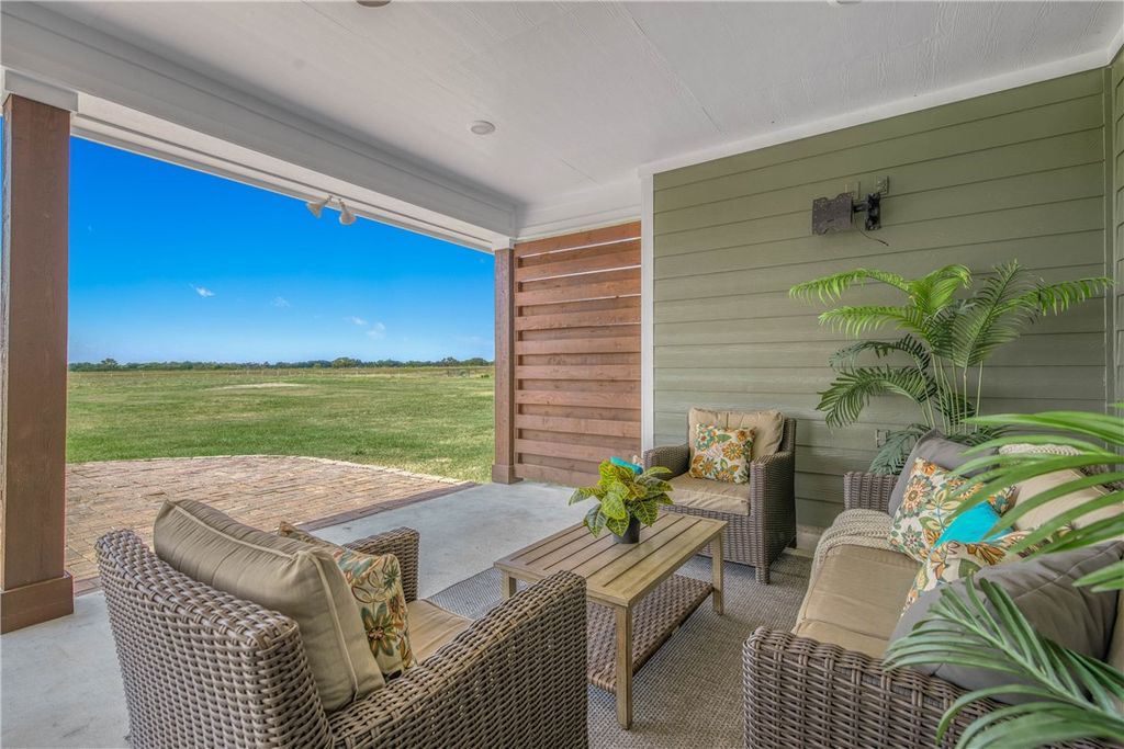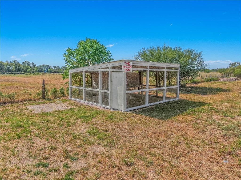 Located on an expansive 3-acre, unrestricted lot, this rustic-style home blends comfort and charm in a peaceful setting. Step inside to a welcoming living room where a warm fireplace, rustic wood ceiling, and wall of windows frame stunning views of the back acreage. The kitchen is a chef's delight, complete with a walk-in pantry, butcher block island, and spacious eating bar, flowing seamlessly into a dining room that looks out onto the back patio. Two flex spaces with immediate access to a full bathroom offer the opportunity to have an office, second living area, play room, exercise area, formal dining room, craft area or 5th bedroom - providing versatile space for work, entertaining or relaxation. The primary suite is a serene retreat, with large windows overlooking the surrounding acreage. Dual oversized walk-in closets and a spa-like bath featuring a walk-in shower with double showerheads create the ultimate escape. Downstairs, two bedrooms share a Jack-and-Jill bath, each with private walk-in closets. Upstairs, a private guest suite with its own en-suite bath offers comfort and privacy for visitors. The spacious upstairs area could also function as a game room, office, or private guest suite with sitting room. Practical features include a well-designed laundry room with counter space and ample storage. Enjoy gorgeous Texas sunsets from the enormous outdoor entertainment area after gathering eggs from the "Chick-Inn" chicken coop.