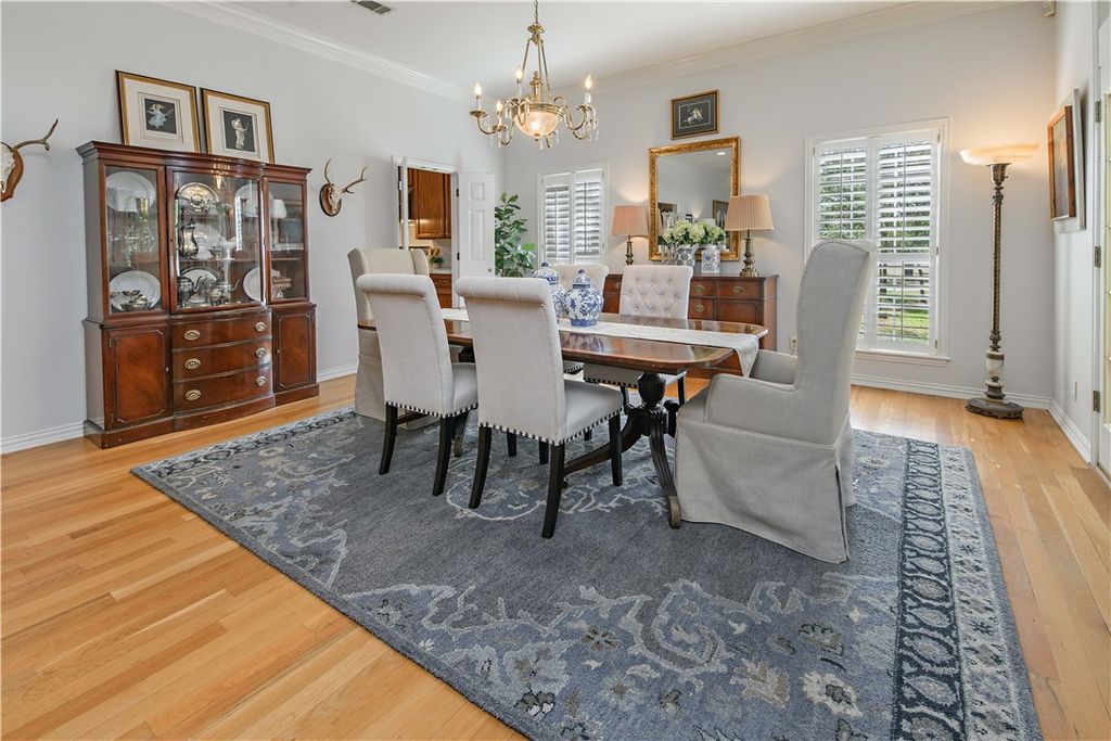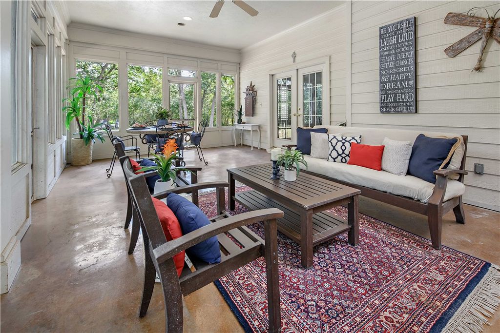 Inspired by a family member's Southern Coastal home, which was featured in Southern Living Magazine, this custom-designed, structurally engineered masterpiece is nestled among towering native trees & foliage on a private 3.59 acre lot in the Estates at River Run. Located at the end of a quiet cul-de-sac, this secluded estate with over 1,000 square feet of covered outdoor living space, welcomes guests with a shaded front porch that spans the length of the home. The formal dining room, living room, & den all share access to the front porch & overlook the shaded front lawn. The cozy den with fireplace opens to a screened porch with views of the inviting lagoon-style pool & covered outdoor kitchen & dining area. The kitchen with commercial-grade range opens to the formal dining & living and, along with a large breakfast area, has access to a small patio, ideal for enjoying a morning cup of coffee while watching the whitetail deer stroll through the yard. The primary suite has access to the screened porch & is a peaceful retreat that overlooks the wooded lot, pool, & pathway to the serene clearing where woodland creatures graze & gather. Upstairs, 3 spacious bedrooms with large closets, & a study all have windows that reveal unique "treehouse" views of this magnificent property. Adding functionality to this fabulous property, a workshop with electricity and water & is plumbed for a full bathroom is located on the right side of the property with easy access from the driveway.