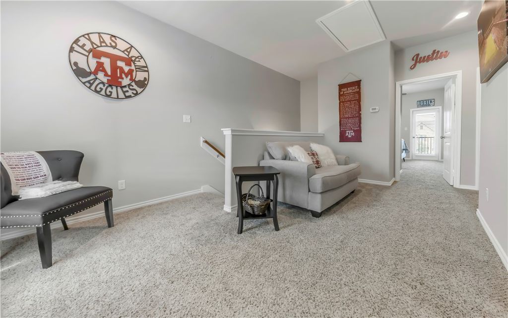 TURNKEY! Perfectly maintained townhome in Pershing Pointe Villas! FURNITURE INCLUDED IN SALES PRICE along with W/D and Refrigerator! Investor alert! Built in 2018 and boasting 1,720 sq ft, this turnkey home is being sold fully furnished, with king beds in every bedroom, plus a washer/dryer and refrigerator. Each spacious bedroom has its own ensuite bath with glass shower doors, large closets and access to three private upstairs patios. Downstairs features a covered patio, open living space with a modern kitchen with contemporary finishes...and an eating bar with seating for up to 4 people. Enjoy added convenience with a two-car garage and low-maintenance living as the HOA covers front and back lawn care and internet. Whether you're an investor or looking for a personal retreat close to Texas A&M, this home checks every box.