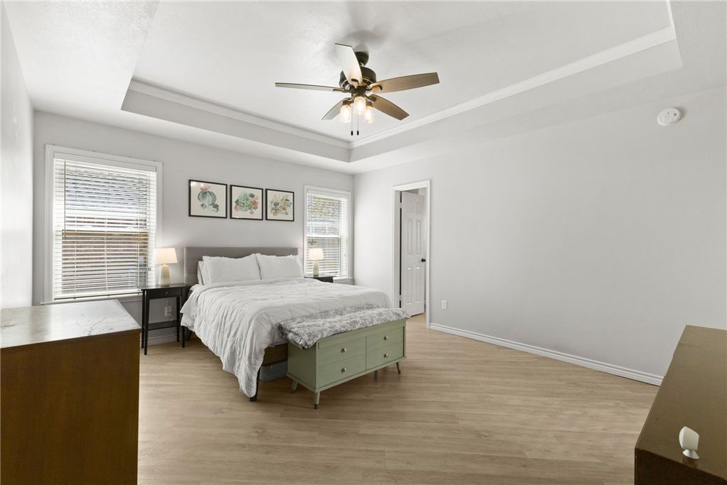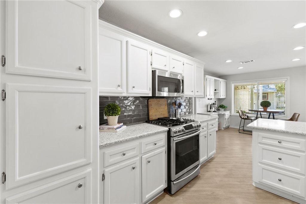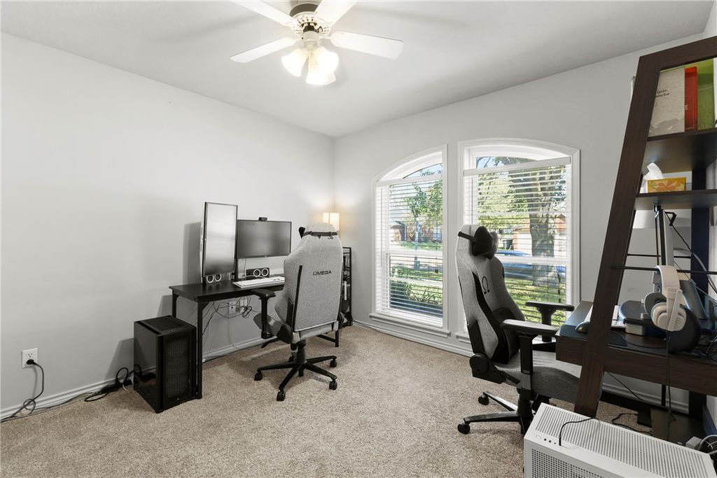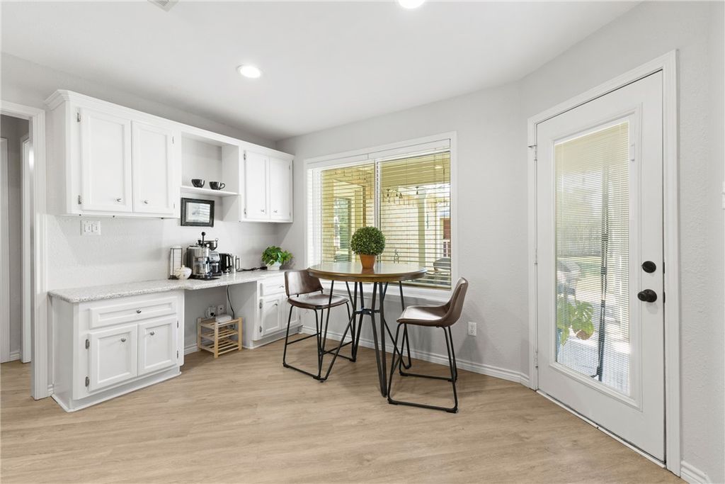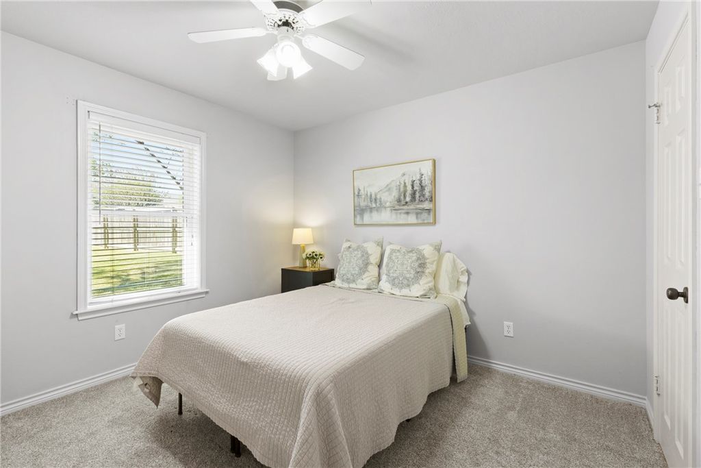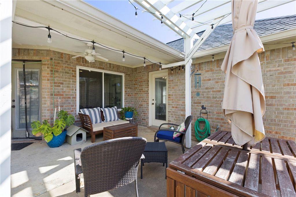 Welcome home to this charming maintained 3 bedroom, 2 bathroom property in the desirable Austin's Colony neighborhood. Step inside to a spacious family room featuring a cozy fireplace -great for relaxing or entertaining. The home also offers a formal dining room, breakfast nook, a large kitchen complete with granite countertops, eating bar and plenty of cabinet space. The generous primary suite includes a garden tub, separate shower and ample closet space. Two additional bedrooms and a full bathroom provide comfort and convenience for family or guests. Enjoy outdoor living at its best in the large, fenced backyard with a lovely covered porch and pergola-ideal for barbecues or quiet evenings. You will also find an enclosed outbuilding that's perfect for a home office or hobby space. Located minutes from shopping, restaurants, and Historic Downtown Bryan, this home has it all! Recent updates include: New Heat Pump & Gas Furnace(2022), All New Windows(2023), New Smart Irrigation Control System(2024), New Garage Door Motor(2024), Roof Replacement(2021). Washer, Dryer & Refrigerator convey!