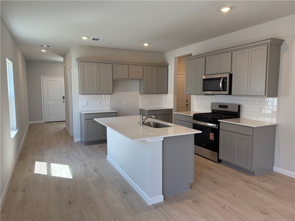 The Emma is a two-story, 3-bedroom, 2.5-bathroom home that features approximately 1,700 square feet of living space. This stunning two-story home features a large living room and dining that opens to the beautiful kitchen. The kitchen features a large breakfast bar and pantry. Upstairs you will find the large main bedroom, which offers a large, spa-like bathroom and spacious walk in closet. The second and third bedrooms and additional full bathroom are also located on the second floor. Additional modern finishes include subway tile backsplash, quartz countertops and stainless-steel appliances.
