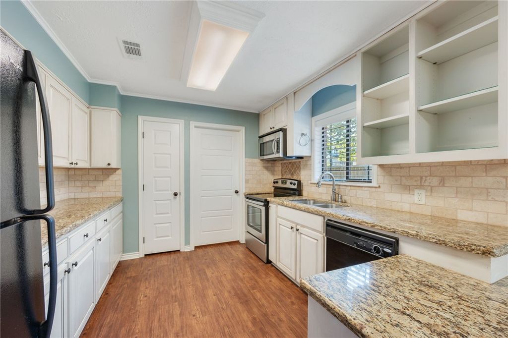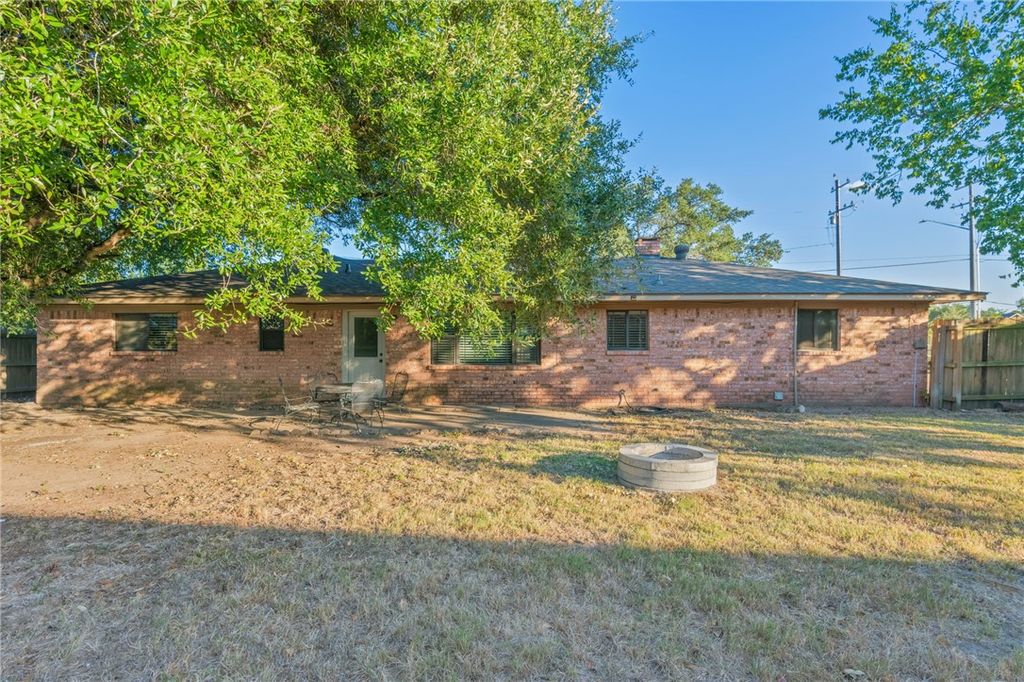 Looking for space, shade, and a standout location? This College Station gem sits on over half an acre (.57) right across from College Station High School"”a rare find inside the city limits! Tucked behind beautiful, mature landscaping, this 4-bedroom, 3-bathroom home offers a backyard that feels like your own private retreat. Step inside to find a spacious living room with vinyl plank flooring and a cozy corner fireplace. The updated kitchen shines with granite countertops, modern cabinetry, stainless appliances, and a window that overlooks the backyard. (Yes"”the black refrigerator stays!) With two owner's retreats, everyone can enjoy their own space and privacy. Outside, the massive backyard offers towering shade trees, room to play or garden, and a storage shed for all your extras. Washer and dryer convey, and the home is being sold as-is. Don't miss this rare opportunity to own a home with unmatched space and location in the heart of College Station"”schedule your showing today!
