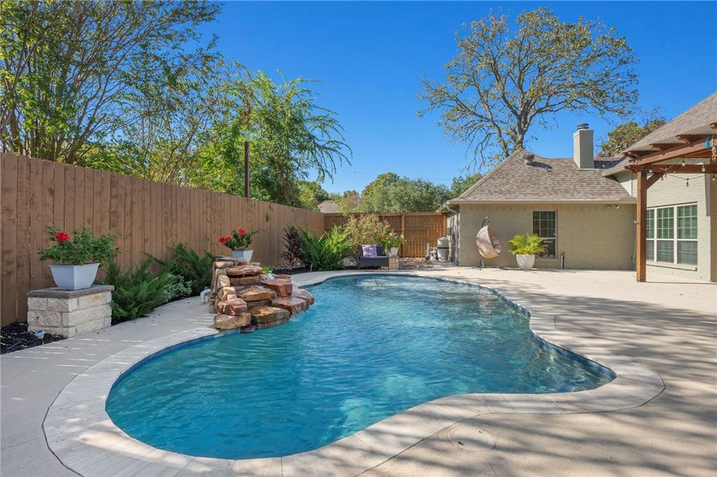 Discover this well-maintained oasis with abundant living space. The main brick house welcomes you with an open floorplan, featuring three bedrooms, two bathrooms, crown molding, soaring ceilings, new windows, and fresh paint throughout. The spacious living room flows seamlessly into the updated kitchen, which boasts new stainless-steel appliances, elegant countertops, modern hardware, and an extra-large pantry. Relax by the fireplace or enjoy the spectacular backyard, complete with an extensive patio, outdoor kitchen, fire pit, 8 ft privacy fence, and pool"”ideal for entertaining. The climate-controlled attached garage offers a private interior staircase to a versatile apartment, including two multi-purpose rooms, a kitchenette, and a full bath. Exterior stairs lead to the backyard and a 288 sq ft Casita, great for guests or a home office. This unique property is sure to impress with its thoughtful design and exceptional amenities. Close proximity to College Station schools, medical facilities, restaurants, and shopping. Minutes from TAMU.