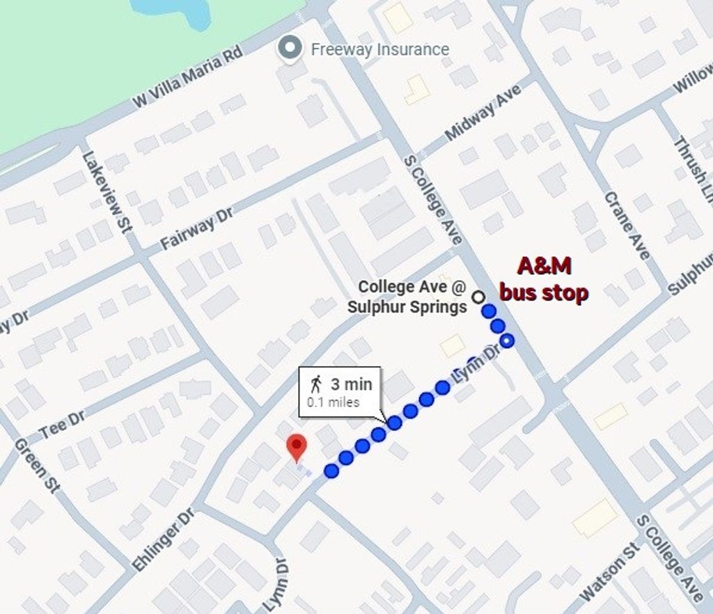 5-bed 5.5-bath house with fenced yard less than 0.1 miles from TAMU bus stop. Only 1.5 miles to Texas A&M University. Currently leased for $3250/month. No carpet. No HOA. Easy to maintain wood-look vinyl throughout. 2 bedrooms downstairs and 3 bedrooms upstairs. All bedrooms have private ensuite bathrooms and spacious closets. Can't beat this location!