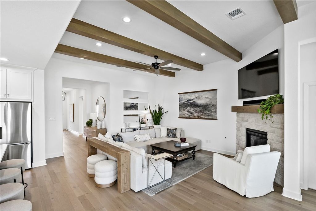 Experience the perfect blend of comfort and style in this spacious 4-bedroom, 3-bathroom One Year Old - Like New RNL Home, located in the highly sought-after Oakmont subdivision of Bryan, TX. This exquisite home offers modern living with thoughtful design. A neatly manicured exterior with a 2-car garage sets the stage for this well-appointed property. Step inside to discover a light-filled open floor plan accented by high ceilings and elegant finishes. The inviting living area, complete with large windows, flows seamlessly into the dining and kitchen spaces, fostering an atmosphere of connectivity and warmth. The kitchen features stainless steel appliances, sleek quartz countertops, and a generous island. The primary suite serves as a private retreat, featuring an expansive layout, walk-in closet, and a spa-like en-suite bathroom with dual sinks, a soaking tub, and a separate shower. Three additional bedrooms offer versatility for guest accommodations, a home office, or a hobby space, accompanied by two additional well-appointed bathrooms. Outside, the open truss extended patio provides more space for entertaining or simply enjoying peaceful moments overlooking the landscaped backyard. Enjoy Oakmont's top-tier amenities at "The Porch" Amenity Center, including a coffee bar cafe, fitness center, resort-style pools, playgrounds, parks, sport courts, and scenic hike & bike trails, all designed to enhance your lifestyle. Don't miss the chance to make this Bryan gem your own!