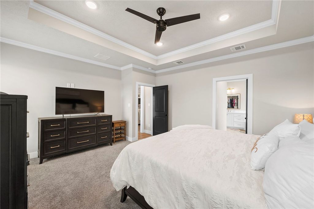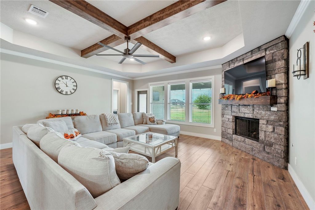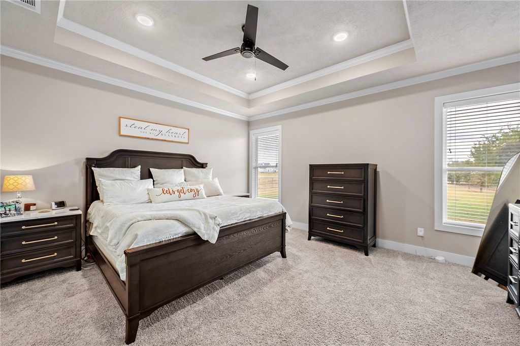 Welcome to this thoughtfully designed 4-bedroom, 3-bath Benjamin Rivers home situated on a spacious 1-acre lot located in the desirable Garrison Creek subdivision. Boasting a spacious 3-car garage, this home features an open-concept layout for modern living and entertaining. The chef's kitchen is a true showstopper, complete with a large island with seating, custom cabinetry, granite countertops, stainless steel appliances, wine cooler, and a cozy breakfast area. The expansive living room offers raised ceilings, elegant crown molding, and a warm gas fireplace, creating an inviting atmosphere. The primary suite is a private retreat with vaulted ceilings and a luxurious ensuite bath featuring dual vanities, granite countertops, a walk-in shower, and a soaking tub for relaxing after a long day. Step outside to your backyard, where a covered patio and mature trees provide privacy from back neighbors. With ample storage throughout, quality finishes, and thoughtful design, this home offers a balance of style, comfort, and functionality. Don't miss your chance to own this exceptional property in a sought-after neighborhood, schedule your private tour today!