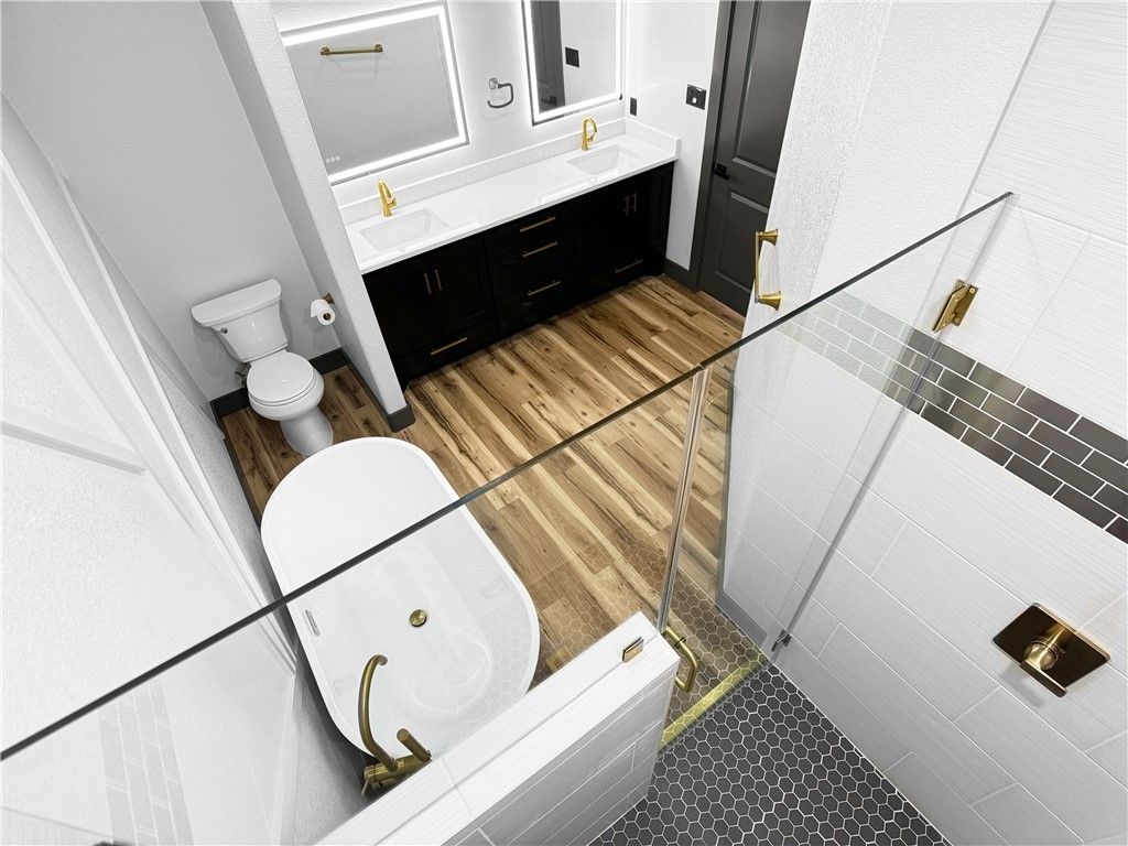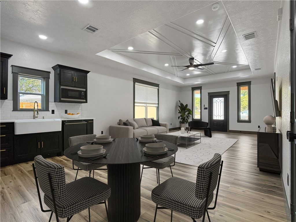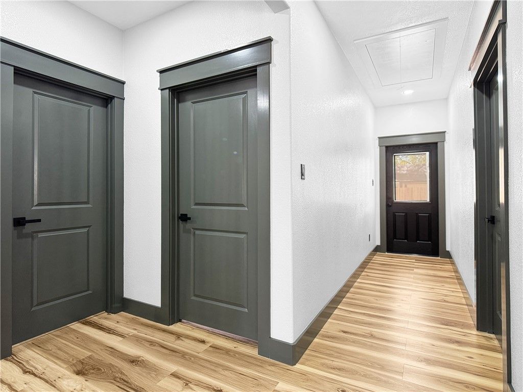 Welcome to this stunning new build, where every detail has been thoughtfully designed to leave you in awe! Admire the sleek smokey gray custom cabinets accented with elegant gold hardware and fixtures. Cooking becomes a pleasure with a professional-grade gas range featuring interchangeable handles, knobs, and a handy wok ring for stir-fry enthusiasts. The spacious farmhouse sink and convenient roll-out spice cabinet make kitchen tasks effortless. Elevated ceilings and sophisticated trim work add to the home's modern charm. Luxurious vanity mirrors with color-changing lights and anti-fog technology create a spa-like atmosphere. Both bathrooms are beautifully finished with stylish tile showers that include recessed shelving, while the master bath boasts a timeless freestanding tub for ultimate relaxation. The utility room is equipped with a practical utility sink, and the gorgeous vinyl plank flooring throughout completes this home's elegant yet functional design. The spacious driveway offers plenty of parking, while the large yard provides ample opportunity!