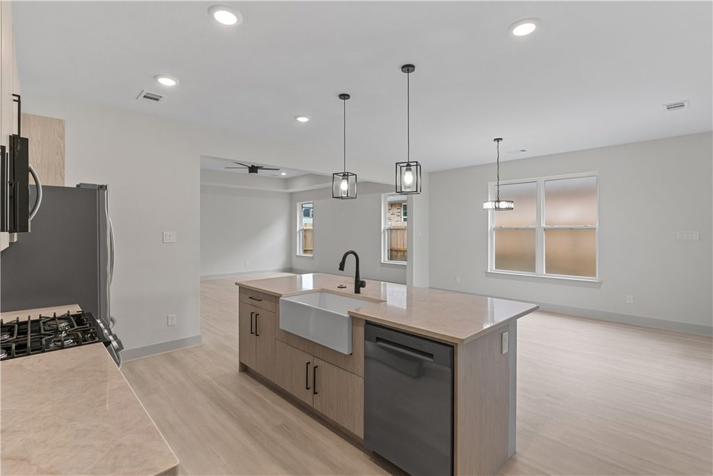 This thoughtfully designed 1,974 sq. ft. home situated on Etonbury Avenue, blends comfort and style with an open-concept layout perfect for family living and entertaining. The kitchen features quartz countertops, sleek cabinet profiles, stainless steel appliances, and a spacious island. The primary suite offers dual vanities, a soaking tub, a custom tiled shower, and a large walk-in closet. Two additional bedrooms each include their own bathrooms, providing comfort and privacy for family or guests. A welcoming study sits just off the entry, and the utility room conveniently connects to the two-car garage. Enjoy relaxing on the covered patio or in the fenced backyard while becoming part of the vibrant Brewster Pointe community. Call today to schedule a private showing!