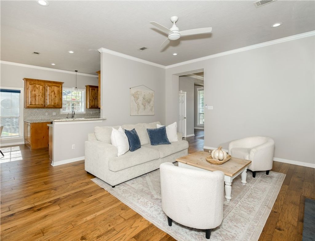 Welcome home to this beautifully maintained 4-bedroom, 2-bath residence in the highly sought-after Edelweiss Estates"”right in the heart of Aggieland! From the moment you step inside, you'll be greeted by warm wood floors and an inviting atmosphere that instantly makes you feel at home. A formal living room sits to your left and a formal dining room to your right, creating the perfect layout for gatherings. The spacious main living area is filled with natural light and features a wall of windows overlooking the backyard oasis with a pool, patio deck, and 8-foot privacy fence"”an ideal space for relaxing or entertaining. The kitchen offers an abundance of countertop space, a custom island on wheels for flexible use, and a large pantry too. The laundry room includes a convenient wet sink. The primary suite is generously sized with a spacious bath, while the secondary bedrooms each feature walk-in closets and plenty of floor space to fit all your furniture. Fresh wall colors, stylish decor, and the warmth of hardwood floors create a welcoming and southern modern feel throughout. Located in the College Station ISD with an elementary school just a hop skip & jump away, this home truly has it all"”comfort, charm, and convenience! Move in ready, so let's make this your Home Sweet Home!