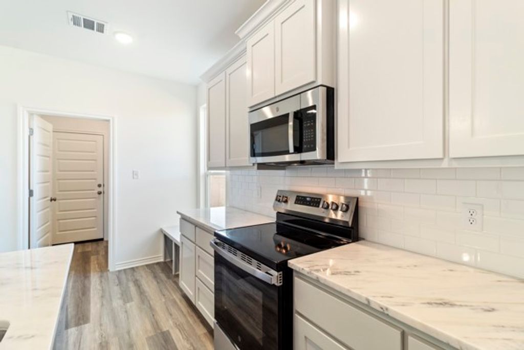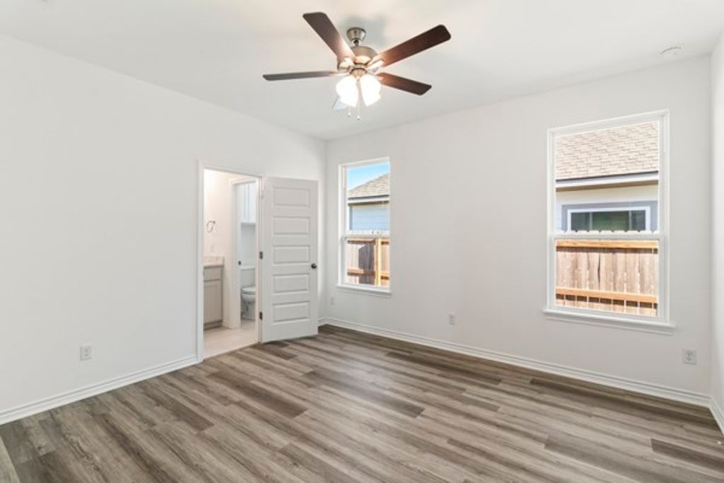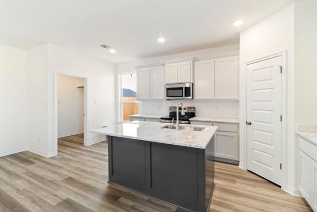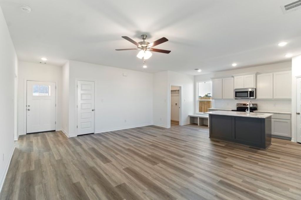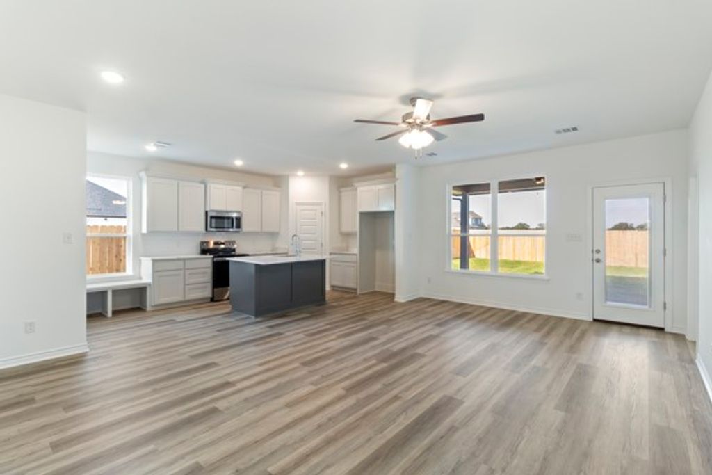 The Acton plan offers a spacious open concept layout that is great for entertaining and family gatherings. Upon entering the home, you will be stunned by the luxury vinyl plank flooring throughout the main areas. Leading into the kitchen, you will see high-end granite countertops, spacious island, custom hand-crafted cabinetry, and high-efficiency appliances. The primary bedroom is fit for a king sized bed, and comes with an extremely spacious walk-in closet. The primary ensuite features granite countertops, custom cabinetry, and a tub/shower combination with wall tile.