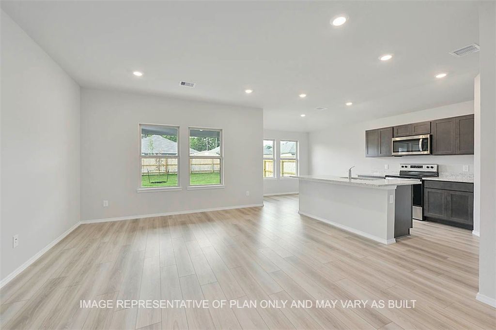 The Lakeway is a single-story, 4-bedroom, 3-bathroom home featuring approximately 2,034 square feet of living space. The large foyer opens to the secondary bedrooms, and bath. Center kitchen includes a breakfast bar and corner pantry. Open concept floor plan boasts spacious combined living room and dining area. The spacious main bedroom, bedroom 1, features an attractive bathroom with walk-in closet. Bedrooms 3 and 4, along with bath 3 are located just off of the Dining Room. The standard covered patio is located off the living room. You'll enjoy added security in your new D.R. Horton home with our Home is Connected features. Using one central hub that talks to all the devices in your home, you can control the lights, thermostat and locks, all from your cellular device. With D.R. Horton's simple buying process and ten-year limited warranty, there's no reason to wait! (Prices, plans, dimensions, specifications, features, incentives, and availability are subject to change without notice obligation)