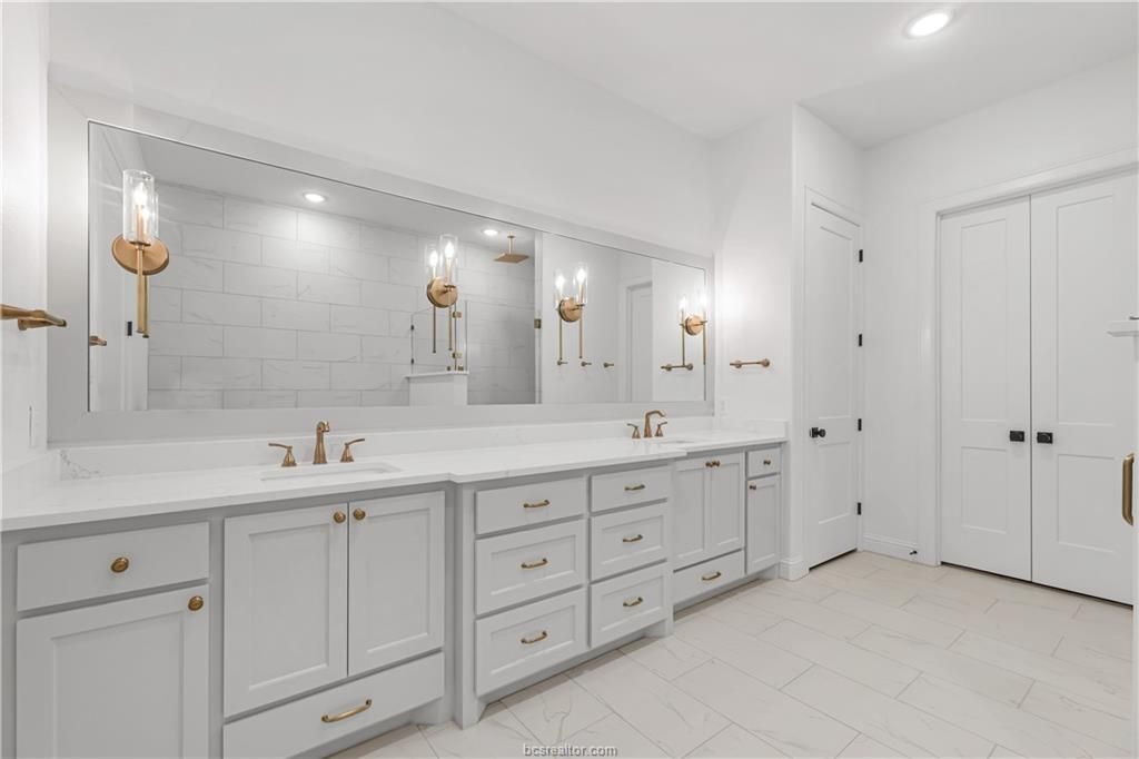 Experience Exceptional Living in Pebble Creek! Nestled in the heart of South College Station's highly sought-after Pebble Creek community, this stunning Magruder Home blends timeless craftsmanship with modern design. Spanning two stories, the home offers 4 spacious bedrooms, 3.5 bathrooms, a private office, and a versatile game room. The open-concept main level welcomes you with a bright and airy great room, where a soaring vaulted ceiling and grand fireplace create a warm focal point. The designer kitchen features a large working island, elegant finishes, and seamless flow into the dining area "” perfect for both entertaining and everyday living. The primary suite serves as a serene retreat, complete with a spa-inspired bathroom featuring dual quartz vanities, a garden tub, an oversized walk-in shower, and an expansive walk-in closet. Two additional guest bedrooms on the main floor share a stylish Jack-and-Jill bathroom. Upstairs, you'll find a large game room and a fourth bedroom with a private bath and walk-in closet, ideal for guests or family. Step outside to the covered rear porch "” prewired for surround sound "” and imagine evenings spent relaxing or hosting friends. With a thoughtfully designed exterior & lush landscaping this exceptional home is ready to be yours. Schedule your private showing today and discover what makes this Pebble Creek home truly unforgettable.