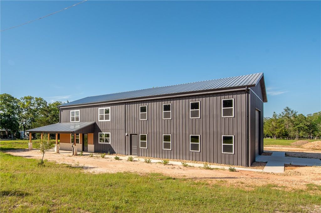 Come tour this modern barndominium in the Birch Creek Forest subdivision near Lake Somerville! This stunning new construction is sitting on FOUR lots which is over an acre and offers the perfect mix of luxury and functionality. Inside, you'll find an open-concept floor plan completed with luxury vinyl flooring, granite countertops, a large island, electric fireplace, and new stainless steel appliances. The home features three large bedrooms, plus a bonus half bath downstairs. The spacious laundry room includes a custom dog shower, and mudroom. Upstairs is a large game room or flex space for guests. The home includes an oversized attached garage equipped with two roll-up doors, for lake toys, workshop space, or storage, and its own half bath. Located just minutes from Somerville State Park, this property provides access to outdoor adventure. Birch Creek Forest offers a boat ramp, playground, swimming pool, and its own fire department. Whether you're looking for a weekend retreat or full-time home, this one has it all!