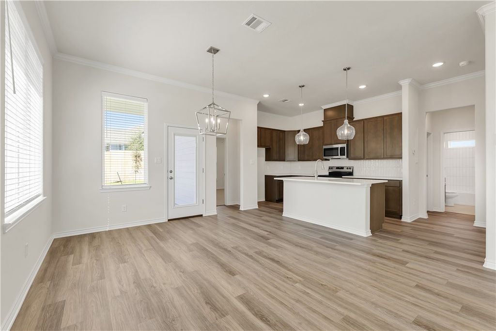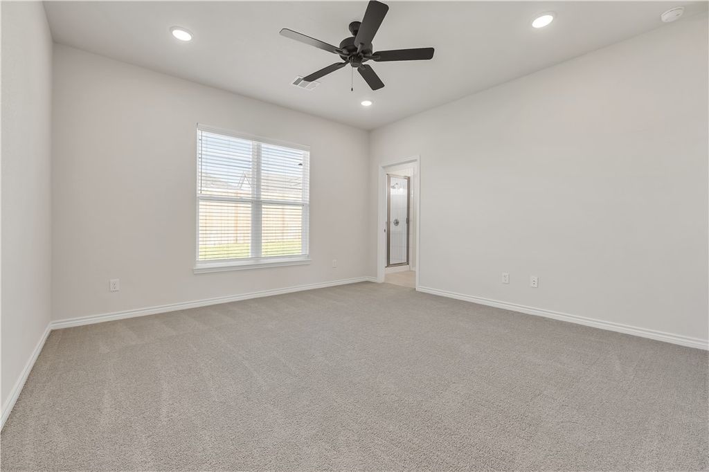 Welcome home to 1919 Pinemont View in Bryan's Pinemont subdivision. This brand new, move-in ready home built by Ranger Home Builders features 3 bedrooms, 2 bathrooms, and no direct side neighbor. Enter through the front door into a sprawling great room featuring the living, dining, and expansive kitchen. Designer soft close cabinetry and a stylish backsplash draw your eyes up to the soaring 10' ceilings throughout this space. Two bedrooms, hall bath, and oversized laundry are split from a large primary ensuite with a walk-in shower and expansive walk-in closet. Conveniently located close to Texas A&M University, the RELLIS Campus, the Health Science Center, shopping, neighborhood schools, and a city park, 1919 Pinemont View is sure to impress!