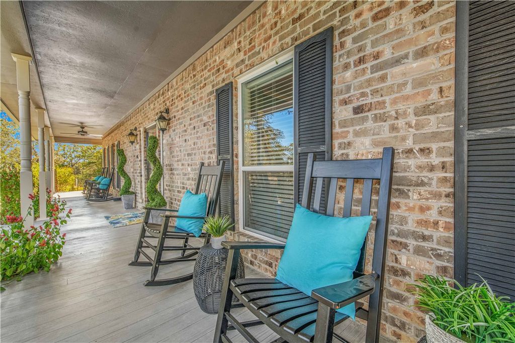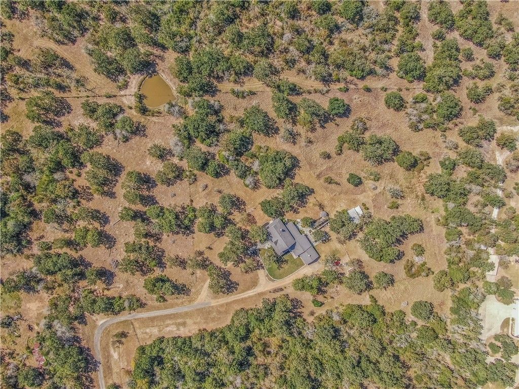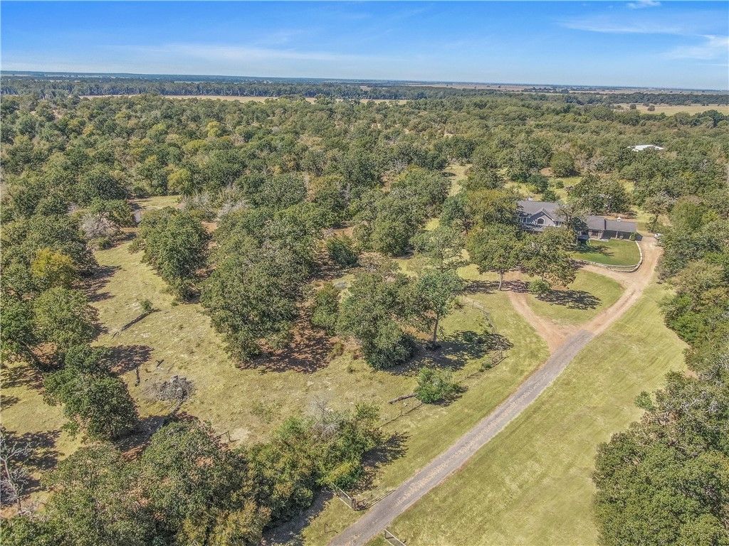 This beautiful 5-bedroom, 3.5-bath home is located on a private, serene 10.91 acre setting in south College Station. The front wrap-around porch and back patio offer peaceful views of the towering native trees, foliage, and wildlife. The grand foyer and welcoming living room set the tone for this unique home. The living room is anchored by a beautiful fireplace and wall of windows providing warm, natural light. Just beyond, a breakfast nook invites slow mornings and casual meals, positioned just off of the kitchen. The kitchen is both functional and elegant, featuring granite countertops, a generous island for gathering, and a large walk-in pantry. Just off of the foyer and living room, the formal dining room makes a statement with its chandelier and refined crown molding, ideal for hosting holidays or special occasions. The spacious primary suite offers gorgeous views of the surrounding acreage and a functional bathroom with enormous walk or roll in shower. Upstairs, a spacious second living area offers a flexible retreat for movie nights, play space, or quiet relaxation. Four spacious bedrooms provide ample room for guests or multigenerational living. One bedroom includes a private en-suite bath, while two others share a convenient Jack-and-Jill bathroom. Outside, the lifestyle continues with a covered patio for entertaining or enjoying peaceful mornings. A charming gazebo, garden area, greenhouse, and thoughtfully landscaped flowerbeds complete this private escape.