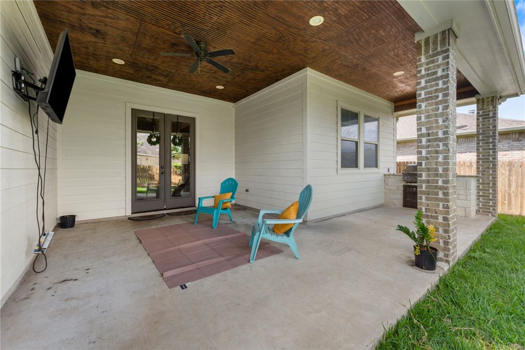 Modern Comfort Meets Farmhouse Charm in Castlegate II. Step into this beautifully crafted home where timeless farmhouse character blends seamlessly with modern design. From the moment you enter through the solid wood front door, you're greeted by soaring ceilings, an elegant open layout, and a warm, welcoming flow made for both entertaining and everyday living. The living area features rich wood floors, custom built-ins, and a cozy gas fireplace. The gourmet kitchen is a chef's dream"”complete with a gas range, built-in oven and microwave, abundant counter space, and a large island perfect for gathering with friends and family. Convenient mudroom drop zone and custom desk area to energy-efficient touches like foam insulation, a tankless water heater, and zoned thermostats. Retreat to your serene primary suite with its spa-inspired bathroom featuring dual vanities, decorative mirrors, a soaking tub, a walk-in tile shower, and a spacious closet with built-ins. Upstairs offers even more flexibility with a large bonus room, full bath, and an additional bedroom"”perfect for guests, a playroom, or a home office. Outside, enjoy Texas evenings on the oversized covered patio with a built-in gas grill and exceptional privacy. You'll love the neighborhood amenities including sidewalks, a community pool, and proximity to schools, shopping, Highway 6, and Texas A&M University. Discover the perfect mix of sophistication, comfort, and location"”this home truly has it all.