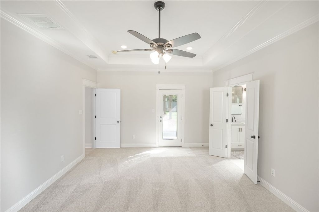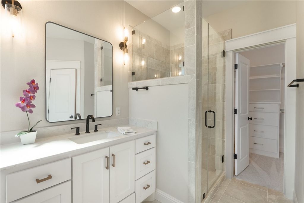 Welcome to your dream home nestled on a quiet gated section of beautiful Williams Creek Lake Estates! This 4-bedroom, 2 1/2-bathroom home boasts an array of exceptional features, including a bonus room/study, a spacious kitchen with a large island, luxurious quartz countertops in the kitchen and bathrooms, as well as privacy with no rear neighbors. Upon entering, you'll be greeted by an open-concept living area that is bathed in natural light, creating a welcoming atmosphere for gatherings with friends and family. The spacious kitchen is a chef's delight, with two ovens featuring a large island that serves as the centerpiece for meal preparation and entertaining. The master suite is a true sanctuary, complete with a door to the exterior back porch.The ensuite bathroom offers a luxurious, spa-like atmosphere, featuring a soaking tub, a separate shower, and dual vanities. Outside the back door, you can unwind on the spacious patio, enjoy outdoor dining, or simply savor the natural surroundings. There is a plenty of space to add a future pool. This exceptional home offers a combination of modern amenities like a 17 seer HVAC with electricity bills averaging $120 in the summer, an oversized laundry & room with room for a second refrigerator and thoughtful design elements, making it an ideal place to call home. Don't miss your chance to own this hidden gem, where luxury and serenity meet in perfect harmony.