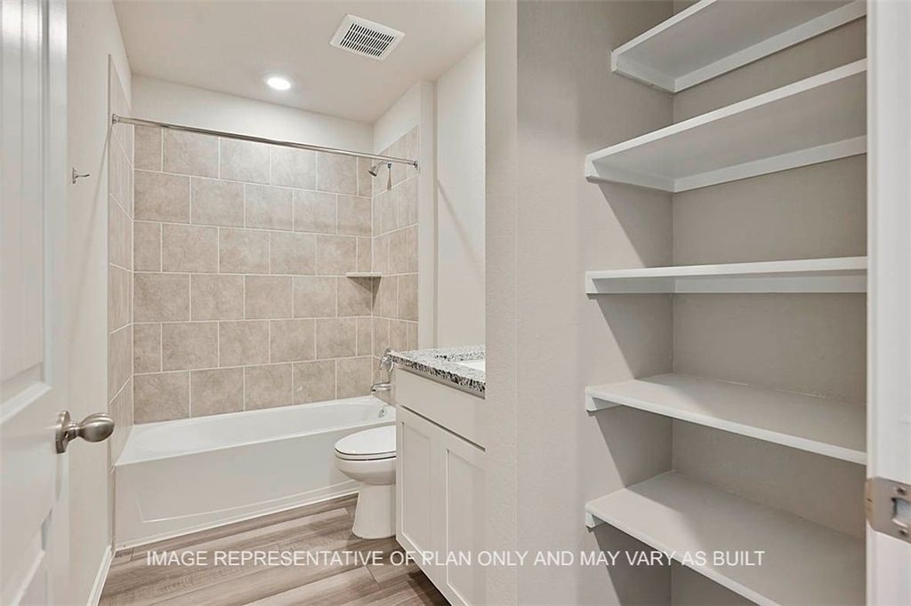 The Texas Cali is a single-story, 4-bedroom, 2-bathroom home that features approximately 1,796 square feet of living space. The long foyer with an entry coat closet leads to the open concept kitchen, living room and breakfast area. The kitchen includes a breakfast bar and corner pantry. The main bedroom, bedroom 1, features a sloped ceiling and attractive bathroom with dual vanities and spacious walk-in closet. The standard covered patio is located off the breakfast area. Additional finishes include granite countertops and stainless-steel appliances. You'll enjoy added security in your new D.R. Horton home with our Home is Connected features. Using one central hub that talks to all the devices in your home, you can control the lights, thermostat and locks, all from your cellular device. With D.R. Horton's simple buying process and ten-year limited warranty, there's no reason to wait! (Prices, plans, dimensions, specifications, features, incentives, and availability are subject to change without notice obligation)