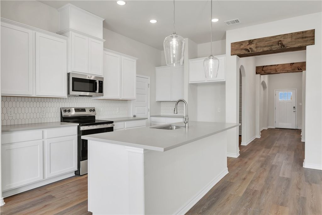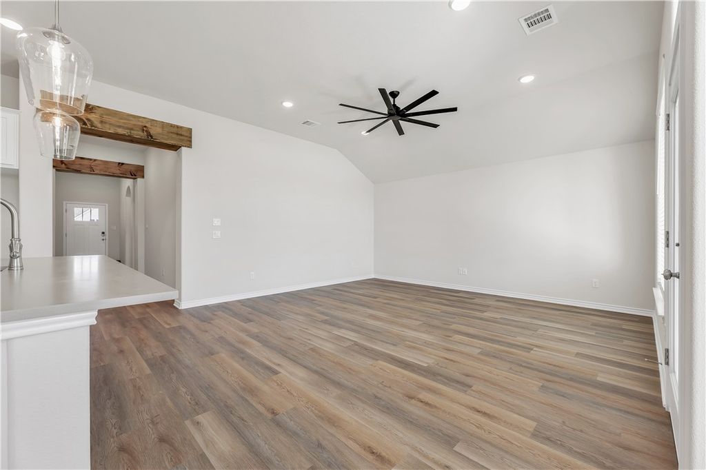 MOVE-IN READY! Welcome home to 3525 Pointe du Hoc Loop! This brand new home, built by Ranger Home Builders, is situated atop a corner lot in Bryan's popular Rudder Pointe community. Walk into the grand foyer that draws you into the spacious family room, dining room, and designer kitchen. Featuring soft close cabinetry, a large walk-in pantry, honed quartz countertops, and stainless steel appliances, this kitchen boasts storage and style. This split floor plan features two spacious bedrooms with a shared bathroom on one side of the house and a secluded and expansive primary suite on the other - with direct access to the laundry room. All three bedrooms have ceiling fans, oversized walk-in closets, and lots of natural light. Off the mudroom space, find upstairs a generously sized bonus room above the garage! Schedule a tour today to experience the remarkable quality & craftsmanship of Ranger Home Builders.