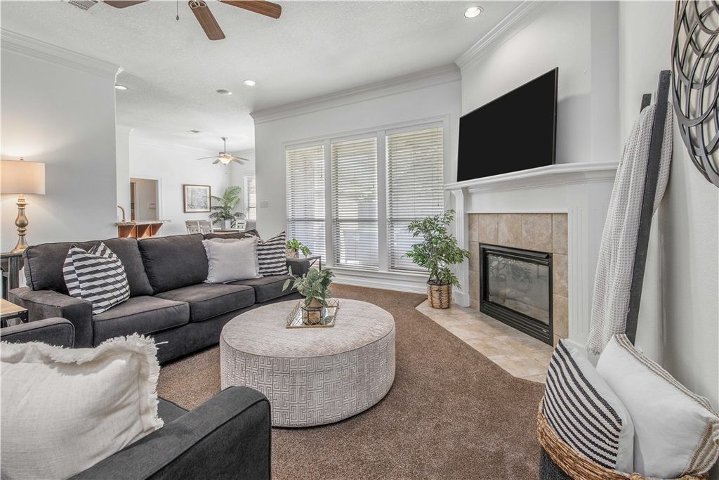 Step into this inviting custom home in Spring Meadows. As you enter, you're welcomed by an open living space and beautiful fireplace, an immediate sense of comfort and connection. The flow leads naturally into the breakfast room and kitchen, where rich cabinetry and stainless steel appliances create a warm, functional hub for everyday living. Just off the kitchen, a versatile second living space, also suitable as a formal dining room, features rich hardwood floors and elegant crown molding, offering flexibility for hosting, relaxing, or entertaining. On the opposite side, the breakfast room provides a relaxed setting for casual meals or morning coffee. The master suite offers privacy and tranquility with a tray ceiling and spa-like bathroom featuring dual vanities, a soaking tub, and a shower. This split-bedroom floor plan features three generously-sized guest bedrooms and an oversized Jack-and-Jill bath. Outside, a covered patio and huge outdoor entertainment area overlook an enormous backyard, great for play, relaxation, or entertaining. This home blends comfort, convenience, and thoughtful design into one welcoming package.
