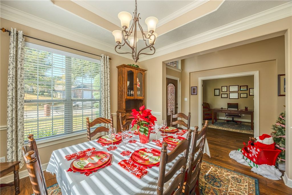 This feature-rich home offers exceptional space, thoughtful updates, and an ideal layout for both everyday living and entertaining. The first floor includes two bedrooms and two full bathrooms plus office and dining room, while the second floor adds two additional bedrooms, a spacious gameroom/loft, and another full bathroom-providing flexibility for guests, family, or hobbies. A stunning two-story den showcases floor-to-ceiling windows overlooking the pool, a striking fireplace, and access to the formal dining room. The office just off the entry adds valuable workspace, and the island kitchen is a standout with Kent Moore custom cabinets, an impressive gas double oven/range, and the high-end finishes you'd expect in a true gourmet kitchen. Engineered hardwood floors run throughout the home, with tile in the kitchen, baths, breakfast room, and laundry. Major updates include a full-house generator, PEX hot water lines, roof replaced in 5/2025, privacy fence (2024), fresh interior paint, and detailed crown molding. Step outside to your own private retreat- an amazing cabana house with a kitchen and half bathroom, great for poolside gatherings or game-day hosting. Additional highlights include a workshop, storage room, cool-decking around the swimming pool, and a portico offering covered parking with direct access to the kitchen. Conveniently located close to schools and shopping, this home delivers space, style, and standout amenities rarely found in one property.