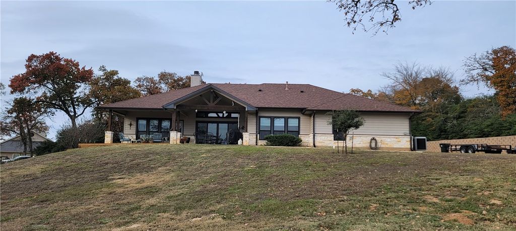 Meticulously maintained and well appointed 4 bed 3.5 bath 2,696 sq. ft. custom home situated on a 2.18 acre hilltop homesite with breathtaking vistas of the surrounding rolling topography. Located just 3 miles from Franklin, TX and less than one mile from the Franklin Ranch this property offers modern conveniences while maintaining the peace and tranquility of the rural Texas lifestyle. This home features a generously sized primary suite with en-suite bathroom and large walk-in closet. Two additional guest bedrooms also have their own en-suite bathrooms and walk in closets. The fourth bedroom could also serve as an office. Other amenities include built-in oven, commercial style gas cooktop, refrigerator, wine cooler, large walk-in pantry, marble and granite countertops, expansive kitchen island, tankless water heater, hardwood & tile floors, wood-burning fireplace, spray foam insulation and separate laundry room. The oversized back porch is perfect for al fresco dining as well as morning or evening relaxation while you take in the visually stunning surrounding countryside. Utilities are provided by Navasota Valley Electric, Robertson County Water and Leon gas. Make an appointment today and then come see why this is the home you have been searching for.