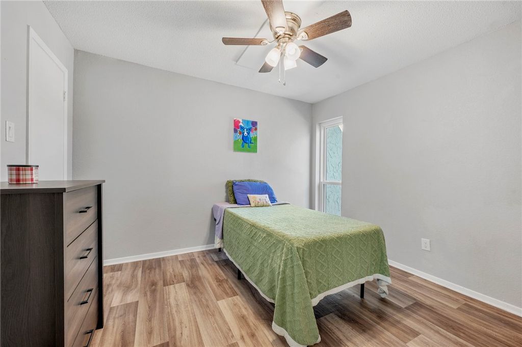 This well-maintained Oakwood Townhome offers 2 bedroom and 1.5 bathrooms with extensive upgrades throughout. The kitchen has been gutted and remodeled, featuring new cabinetry, countertops, sink, lighting, stove, microwave, updated hardware, and stainless steel appliances. Tile flooring highlights the kitchen and breakfast area, while solid-surface flooring continues throughout the home. Both bathrooms have been updated with new vanities, mirrors, and fixtures. Additional improvements include replaced windows, updated ceiling fans with LED lighting, and modern fixtures throughout. The roof was replaced approximately one year ago. A private fenced backyard provides excellent outdoor space. An LG washer and dryer (approximately one year old) and the refrigerator will convey with the property.