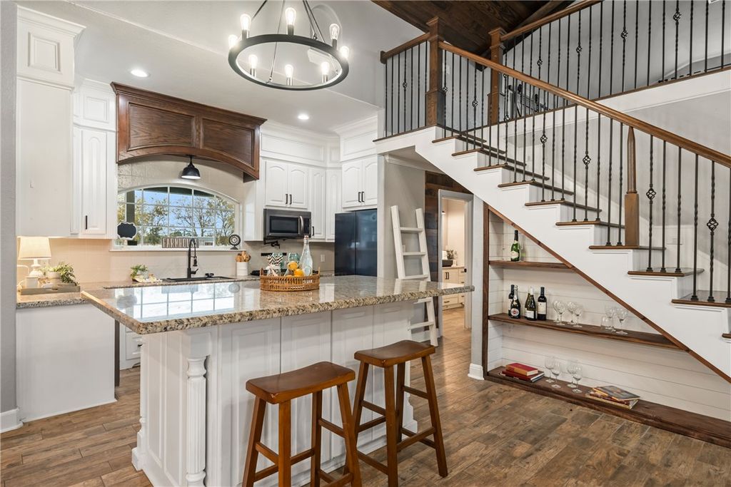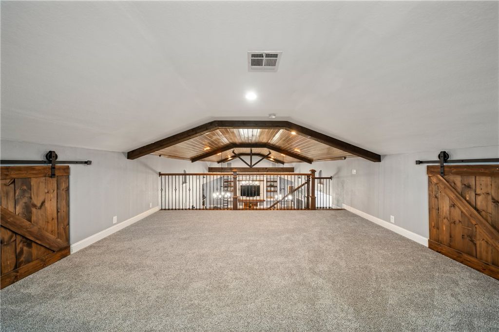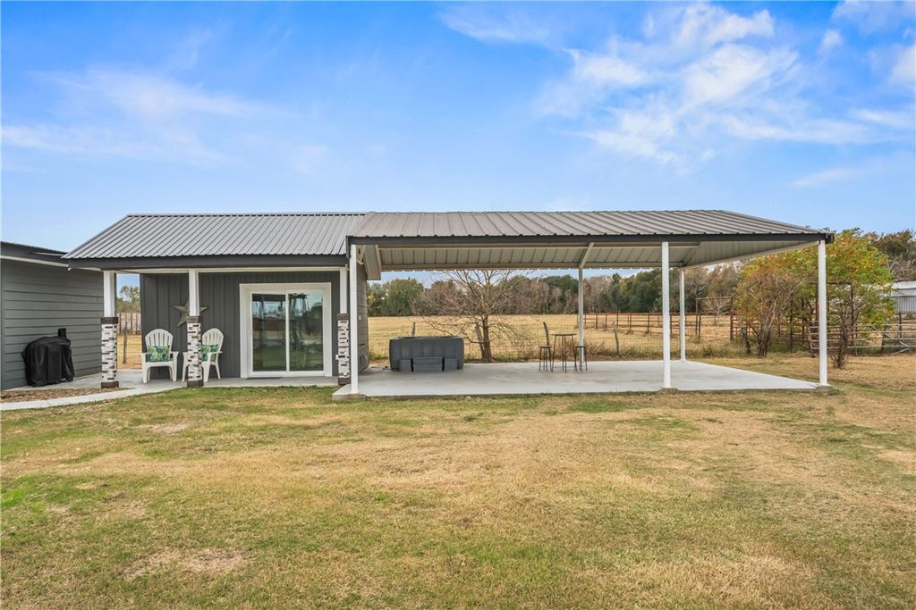 Unrestricted acreage improved with a thoughtfully designed residence & functional land features. The home offers vaulted, wood-paneled ceilings with exposed beams, an open-concept living & a stone fireplace that anchors the main living space. Custom built-ins & architectural details add character & storage, while the kitchen features granite countertops, a farmhouse-style sink & island seating. The primary suite includes a spacious bedroom & bath with soaking tub and walk-in shower & a large loft provides flexible secondary living space. The exterior highlights open pasture with multiple fenced areas, pipe & no-climb fencing & a centrally located pond with active fountain. A gated drive leads to the residence, which is complemented by covered porches & patios for outdoor living. Multiple outbuildings & a large shop with roll-up doors & covered bays support agricultural or recreational use. A rare opportunity to own unrestricted land with a home designed for comfort & function.
