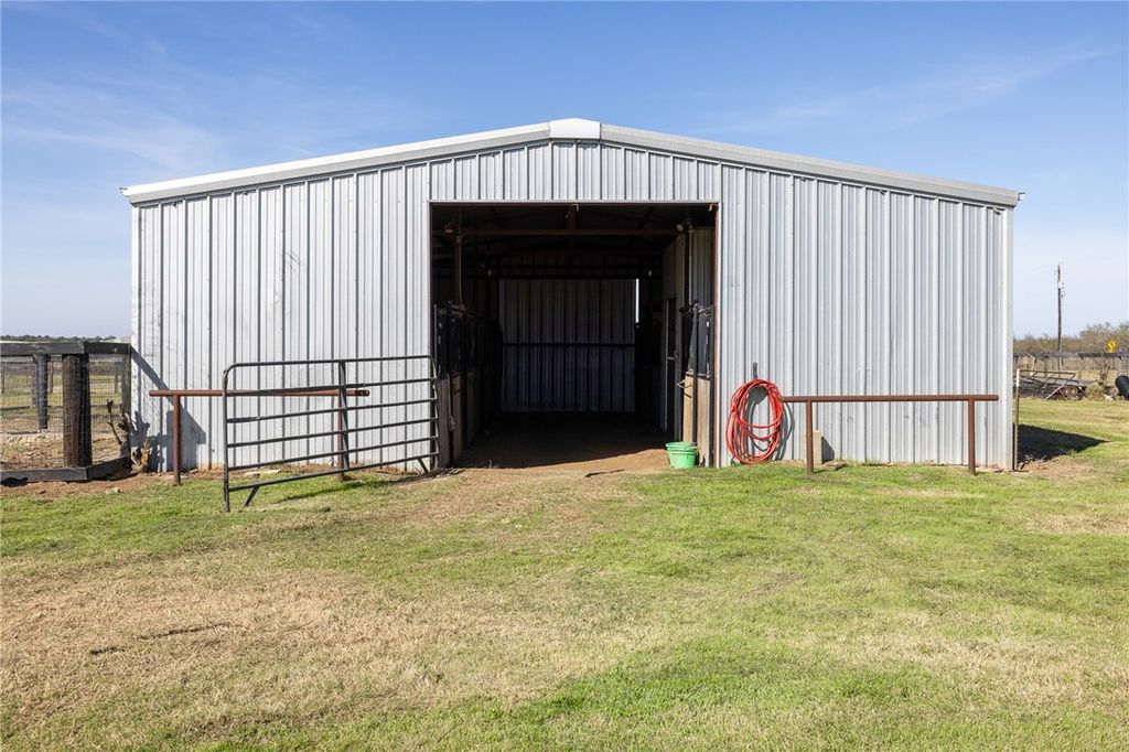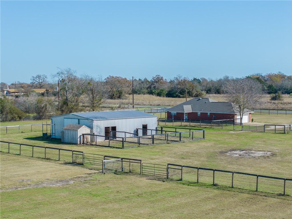 Looking for the perfect horse property? This rare, turn-key gem in Bryan sits on 5.7 acres and has everything you need. At its heart is a center aisle 6-stall barn (convertible to 7 stalls) with a tack room and runs on one side, offering both practicality and comfort for your horses. The property includes three spacious paddocks with 2x4 horse fencing, with room to add more. One paddock is perfectly sized for an arena, complete with six light poles ready for electric and lights to create your dream riding space. The charming 3-bedroom, 2-bathroom home is equally inviting. Enjoy engineered wood flooring that adds warmth to the living areas, durable tile in key spaces, and a split floorplan featuring a spacious master suite with an ensuite bath and walk-in closet. Recent updates, include fresh interior paint and a new roof within the last year, making the home move-in ready. Outside, the fenced backyard is perfect for relaxing or entertaining, while the beautifully landscaped front yard adds to its subtle charm. An attached garage enhances convenience and functionality. Whether you're an experienced equestrian or just starting out, this property offers the ideal blend of practicality, comfort, and room to grow. Bring your vision and make it yours!