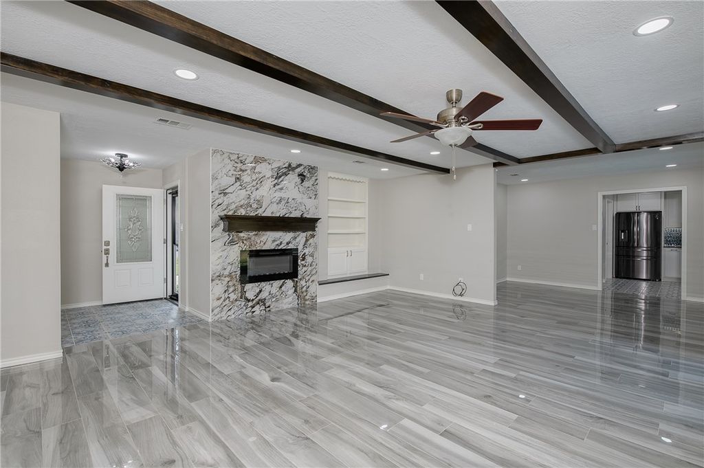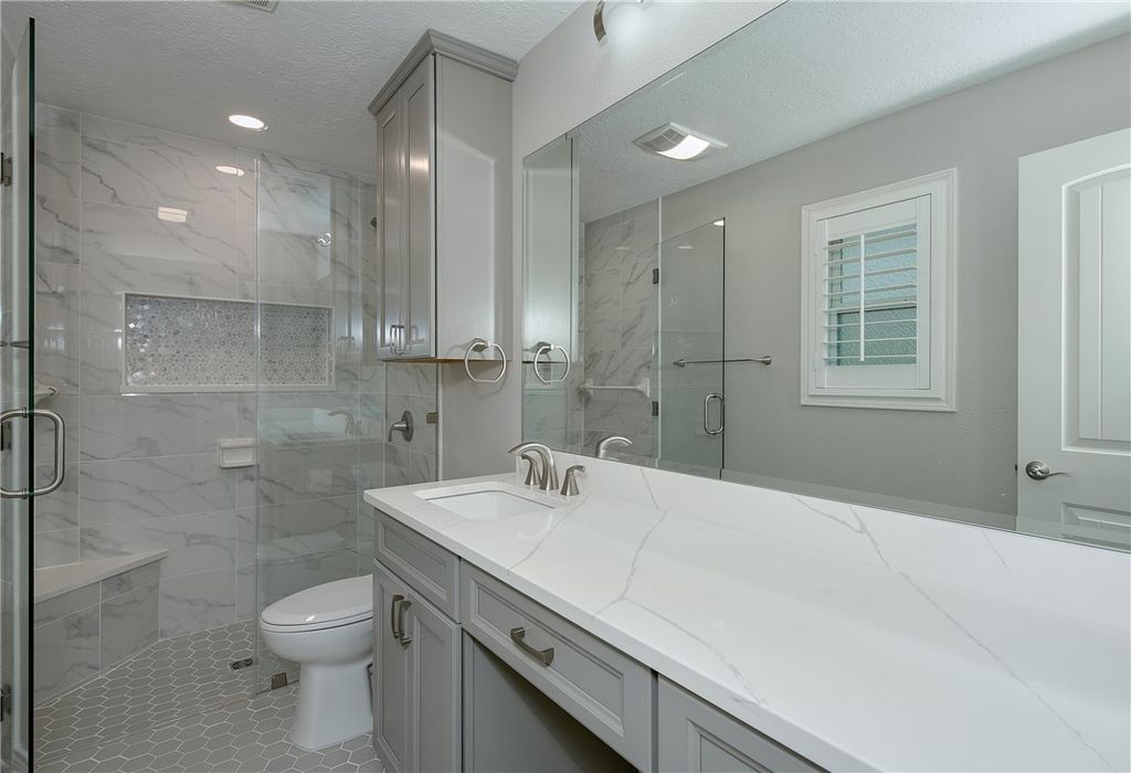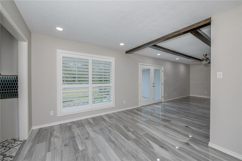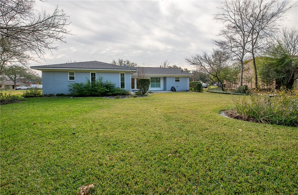 Beautiful totally remodeled home with 4 bedrooms/2 baths located in the heart of College Station in Camelot on .37 acres. No HOA! Everything New--kitchen- cabinets, under cabinet lighting, hardware, 4 burner gas cooktop, vent hood, double oven, dishwasher with new supply lines, garbage disposal, knobs, pulls, countertops, backsplash, undermount kitchen sink, faucet with new supply/drain lines, recessed lighting, all appliances, microwave, new refrigerator with new water line, wooden shutters (throughout), interior doors, light fixtures, plates & cover plugs, French doors, recessed linear electric fireplace, all new floors throughout. Baths-new toilets, faucets, heat vent lights, toilet paper holders, towel and hand towel holders, vanity cabinets, head knocker, medicine cabinets and undermount sink. Primary bath has a new walk in shower. New windows, replaced trim around all new doors, new hinges, knobs and deadbolts. Electrical-replaced all plugs & switches throughout, new fans, replaced all GFCI plugs, new doorbell, phone/cable plates. Beams in the family room. Freshly painted interior and exterior. Garage freshly painted with epoxy floor. Back porch has epoxy. New attic access door, door to closet and hot water heater vents. New gutters/leaf guards. Roof is 3 years old. Washer & dryer convey. Located minutes from schools, parks, restaurants and Texas A&M. A must see home! Absolutely stunning!