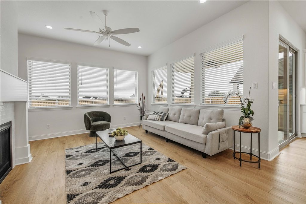 The Mia is one of our newest and most modern in-house floor plans, thoughtfully designed to maximize space and comfort. It offers four bedrooms, three full bathrooms, and a well-proportioned study. Bedroom four, bathroom three, and the study are well positioned for peaceful living from the rest of the home. In the owner's suite, you'll love the elegant free-standing tub, all while enjoying the everyday convenience of a separate shower and dual vanities. At the heart of the home, the open-concept kitchen and family room blend functionality with a warm, inviting space. The central fireplace and built-in shelving provide a beautiful accent to everyday living, while the covered patio provides an additional gathering space for entertaining. Let's make The Mia yours today!