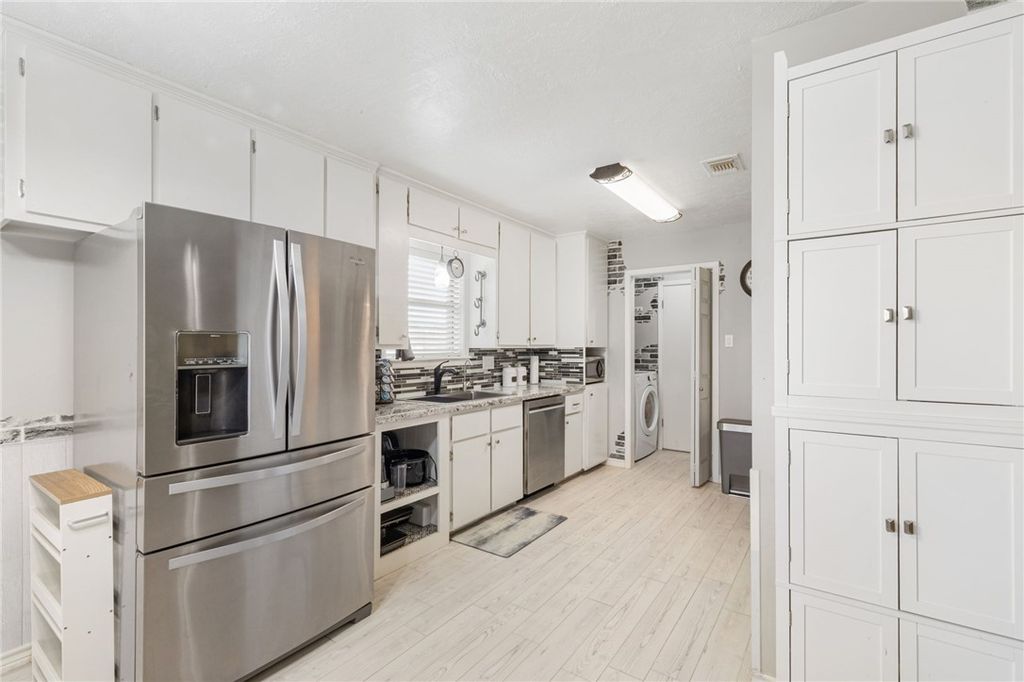 Nestled in the highly desirable Raintree subdivision, this beautiful home combines modern touches with undeniable charm. Conveniently located just off Highway 6, it offers both accessibility and a serene retreat. Step inside to discover new wood-look tile flooring that adds warmth and durability to the living areas and bathrooms. The kitchen has been thoughtfully opened up to look into the living room and has been upgraded with new gas range and dishwasher. The bedrooms are generously sized and bathrooms have been tastefully renovated to provide a fresh, stylish feel. Out back, you'll find a fully fenced expansive yard with covered porch, fire pit and awnings. Another feature is a double gate on one side, which can be useful when parking vehicles or storing a trailer, or simply enjoying the extra space. And with no neighbors directly behind, you'll relish the privacy and tranquility this home offers. Schedule your visit today and see what makes this property so special!