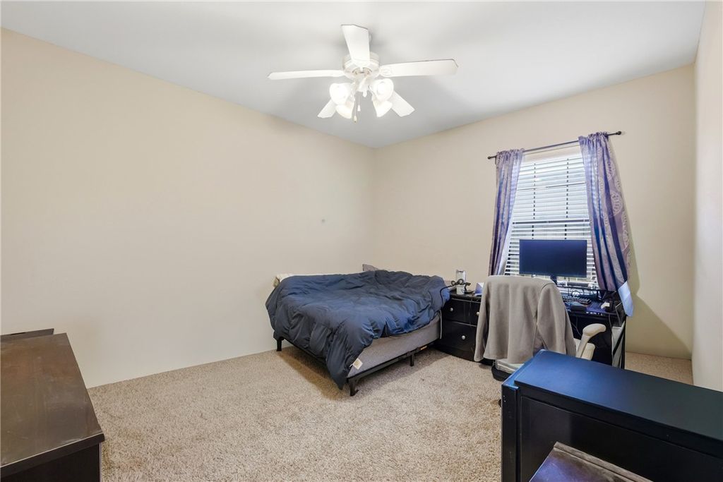 4-bedroom, 4-bathroom townhome located in The Barracks, just one block from the Texas A&M bus stop. Major improvements include a new roof (2025) and new HVAC system (2024), offering peace of mind for the next owner. The main level features stained concrete flooring, granite countertops, and a full appliance package including refrigerator, washer, and dryer. Each bedroom includes a spacious closet and a private ensuite bathroom. Residents enjoy access to The Barracks' resort-style amenities, including The Cove at BearX pool, multiple community parks (including dog parks), an outdoor fitness park, sand volleyball and basketball courts, a hammock park, a catch-and-release pond, and over 13 miles of walking and running trails. Convenient location with easy access to Texas A&M, shopping, dining, and entertainment. Schedule your showing today!