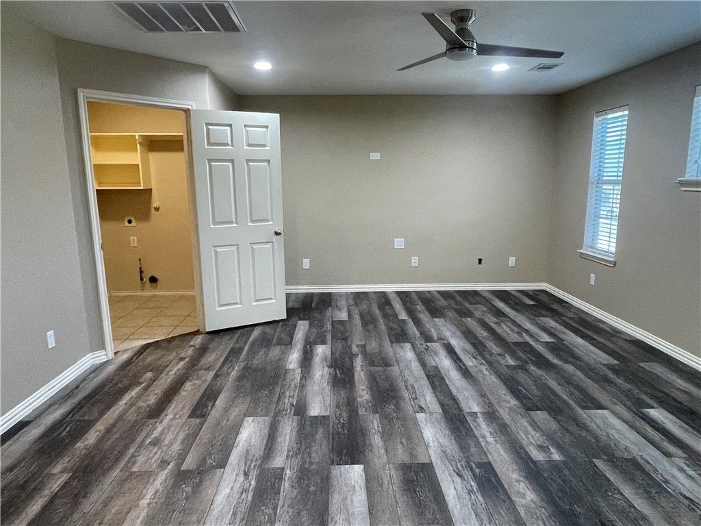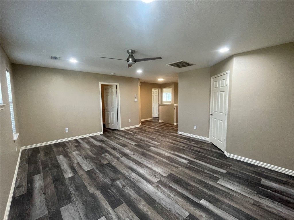 Immaculate traditional two story located on a corner lot is move in ready! Home has solid surface floors, with no carpet, tile in kitchen, dining area, living, master bathroom & bedroom. Open plan has high ceilings for nice spacious feeling. Dining room just off the front entry. Kitchen has tons of cabinets and countertop space and large pantry. Family room has room for your large furniture for everyone to gather near the fireplace. Great for entertaining! Primary bedroom downstairs with a super remodel of the ensuite bath & with walk in closet. All other 4 bedrooms have nice closets as well located on the 2nd floor with a huge game room or 2nd living area which includes nice wood look flooring. Out back offers a covered patio & wonderful backyard for the kids & pets to enjoy, which includes a powered metal shed, several types of trees, guava, banana, lime, pecan. Home has newer security system with cameras. Whole house water softener. The water heater & roof are 2025.