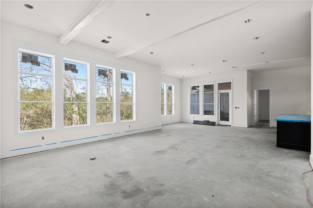 Set within Traditions Golf Club community, this beautifully designed 2,915 sf residence is scheduled for completion March 2026. Offering 4 bedrooms and 3.5 baths, the home blends refined architectural detail with everyday living. The open-concept living space is highlighted by soaring 12' ceilings, wood accent beams, and an elegant cast iron gas fireplace that anchors the room. Bright, open living with abundant natural light and eight large rear windows overlooking a private wooded backyard. The gourmet kitchen is designed to impress, featuring a 36" Cafe range, an oversized 12' island with seating, and a spacious walk-in pantry complete with a built-in coffee bar"”perfect for entertaining! Guest bedrooms offer generous proportions with 10' ceilings and includes classic plantation shutters. The on-suite guest bedroom makes a perfect flex room or office! The primary suite is a true retreat, with a luxurious spa-style bath showcasing a wet room, Jetta soaking tub, and floor-to-ceiling tile for a serene experience. Additional highlights include solid interior doors, a covered outdoor kitchen with Coyote grill, and a fully iron-fenced backyard. The home is thoughtfully equipped with fiber stub, Ethernet, security alarm wiring, and TV outlets in all bedrooms. Built with energy efficiency in mind, the home features a BIBS (Blown-In Blanket System) insulation system. Every fixture and finish has been carefully selected to deliver a home that is as elegant as it is comfortable!