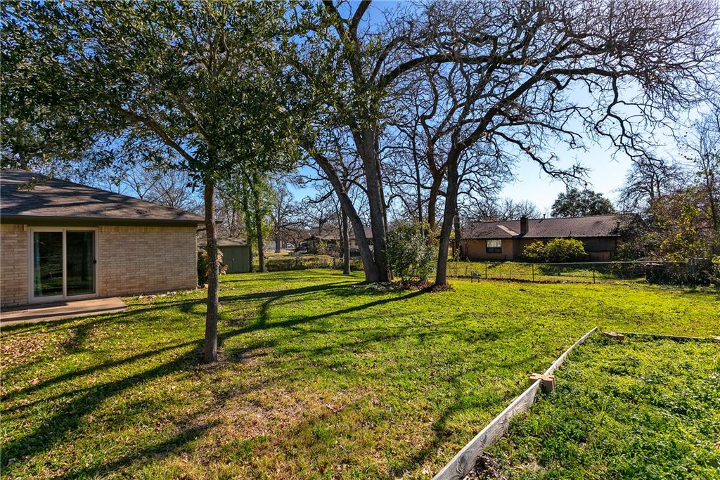 Charming and well-maintained 3 bedroom, 2 bathroom home in College Station with an attached 2-car garage and no HOA! You will enjoy the vaulted ceilings in the spacious living room anchored by a floor to ceiling brick fireplace. The kitchen has been refreshed with granite countertops and painted cabinets, offering a bright and functional space. Major improvements include a new roof in 2021, updated double-paned windows in 2023, and multiple updated sliding glass doors. The spacious bedrooms offer large closets for ample storage. Enjoy outdoor living with a screened-in porch and a large backyard complete with a storage shed. Whether you're looking for your first home, a place to grow, or an investment in a great location, this one checks all the boxes.