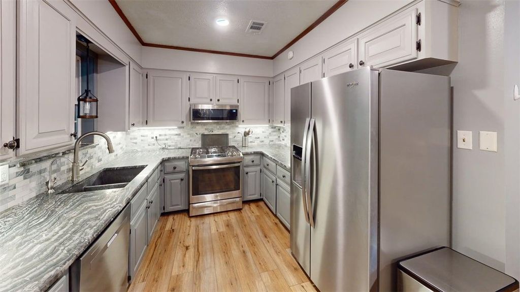 Welcome to this beautifully maintained 3 bedroom 2 bathroom home in the quiet La Brisa Subdivision. The inviting features include modern updates throughout including a stunning kitchen with stainless steel appliances and gorgeous granite countertops. Your spacious living room awaits with great natural lighting and a wood burning fireplace. Enjoy the welcoming backyard perfect for outdoor dining and relaxing under the large covered patio providing a seamless extension of the home. This charming beautiful home you won't want to miss!