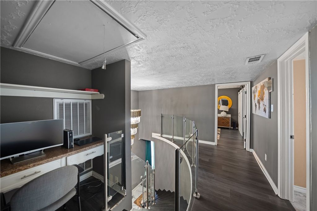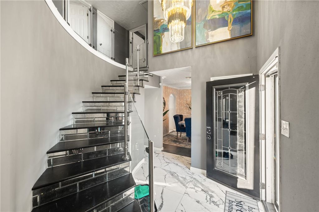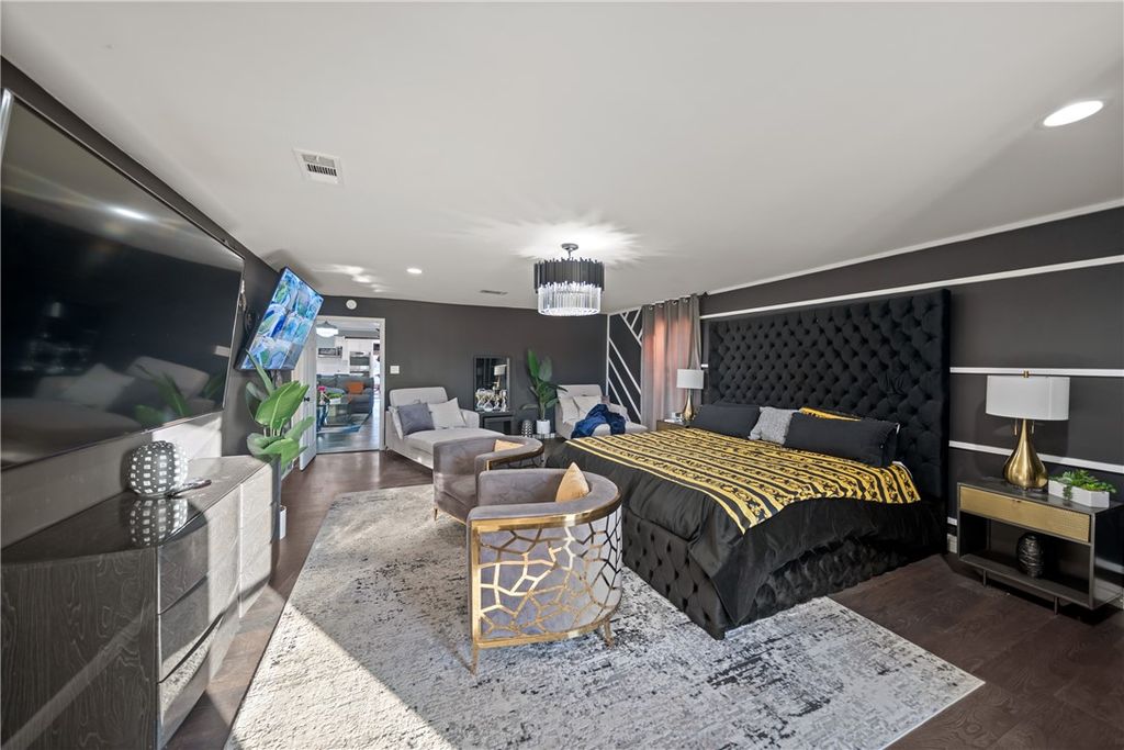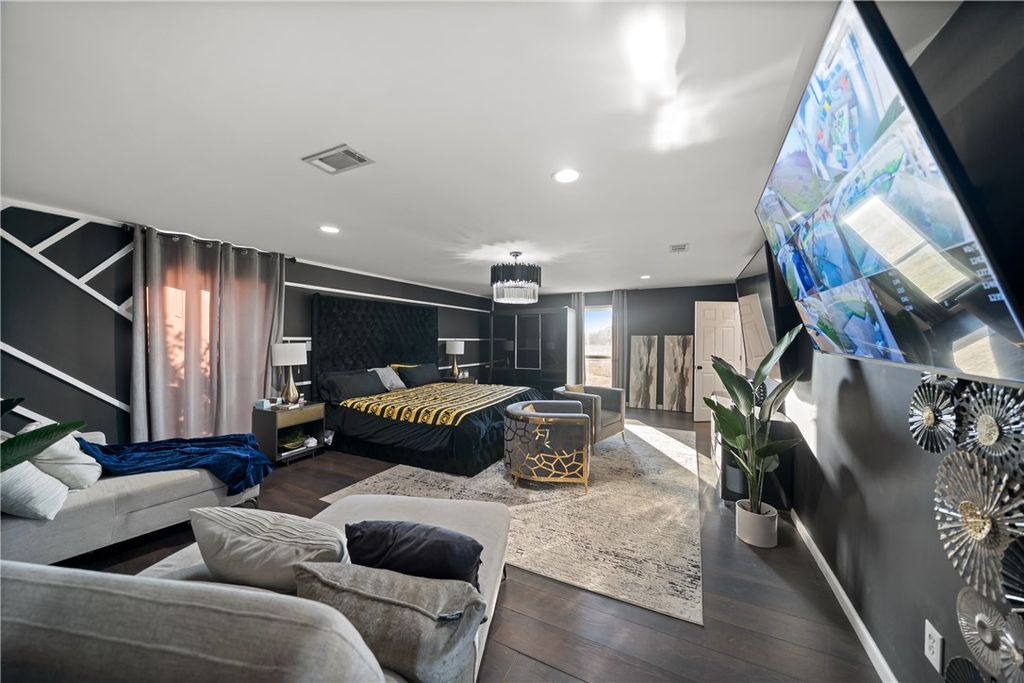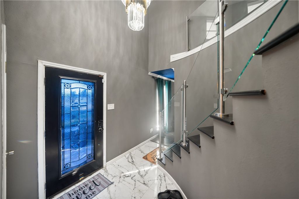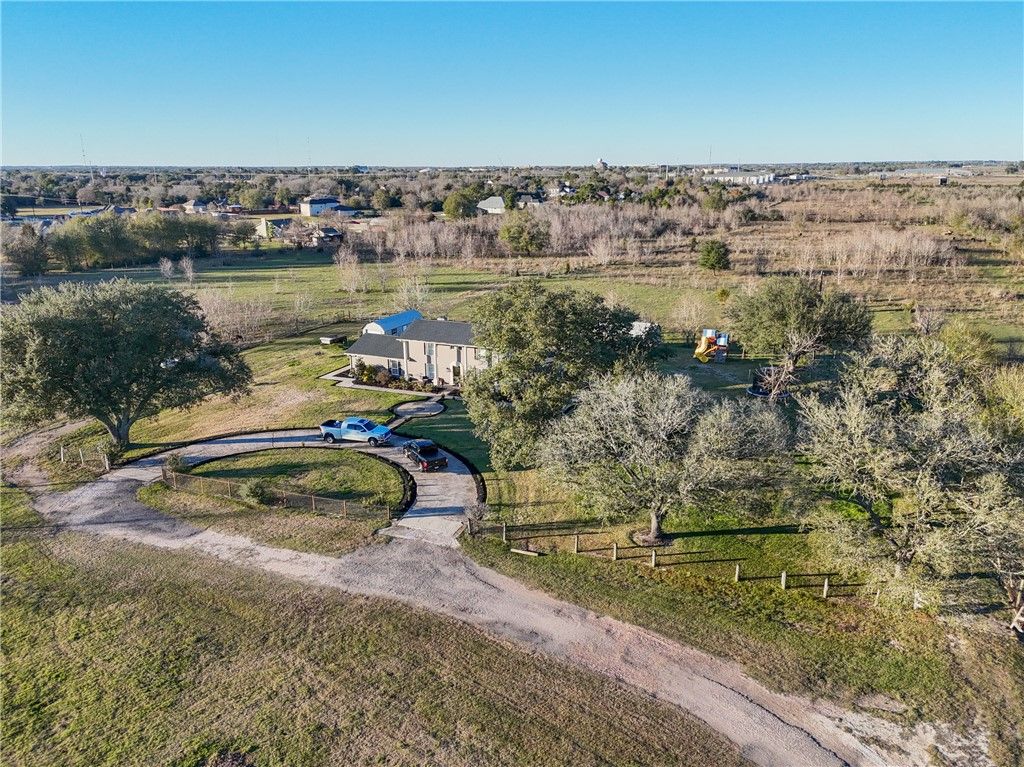 Set on approximately 2.47 unrestricted acres, this elegant two-story residence offers nearly 3,000 square feet of thoughtfully designed living space with refined finishes throughout. A dramatic glass stairway, high ceilings, and a formal entry create a striking first impression. The kitchen is beautifully appointed with granite countertops, double ovens, breakfast bar, and self-closing cabinetry, marble walls and tile through out. The first-floor primary suite provides a private retreat with en-suite bath and separate shower. Upstairs, additional bedrooms and flexible spaces include a media room, game room, and home office or playroom. Outdoors, enjoy resort-style living with a covered patio, gourmet outdoor kitchen, and a gunite pool with attached spa and waterslide. A detached structure with game room, restroom, and shower adds exceptional versatility. Ample parking, circular drive, and convenient access to US-290 complete this impressive offering.