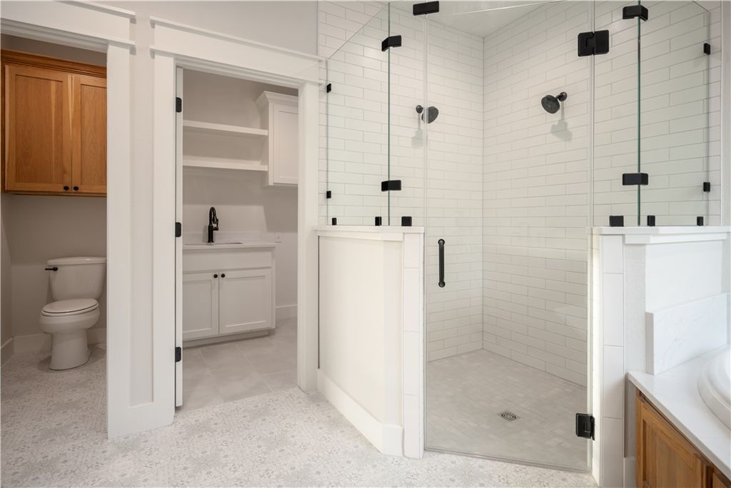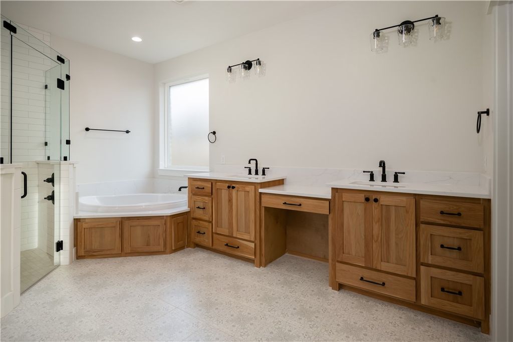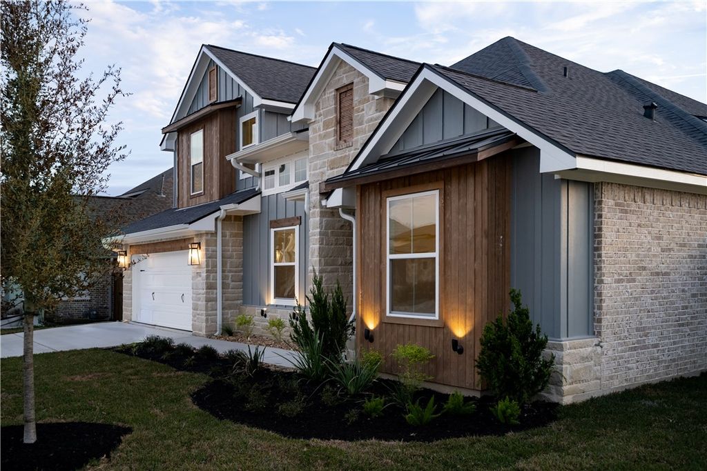 Reece Homes "The Julia II" plan is now available in Mission Ranch! Tall ceilings and a wood-burning fireplace will surely captivate with its comfortable and stylish features. Custom cabinetry, GE stainless-steel appliances, a farmhouse sink, quartz countertops, and a butler's pantry create a kitchen that's not only ready for prepping but enjoying! A luxury-sized Primary bedroom leads you into an equally beautiful En-suite. Double vanities, a walk-in shower, and a large soaking tub are waiting to help you unwind after a long day. Expansive walk-in closet with the laundry room conveniently located nearby. Two additional bedrooms with their own baths are located downstairs for maximum flexibility. Upstairs opens to a bright, welcoming flex space with a full bathroom! A covered patio showcases an outdoor kitchen, the perfect place to enjoy a meal while watching the sunset. Indulge in the community's fantastic amenities, including a gym, sports courts, walking paths, ponds, and even a community pool for hot summer days. Located near Texas A&M, shopping, dining, schools, and parks, this home offers the ideal balance of tranquility and accessibility.