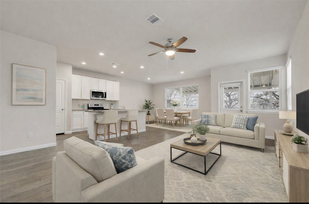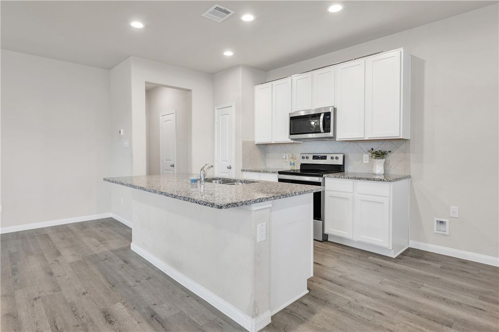 Lovely 3 bedroom, 2.5 bath home ideally located directly across from the Brazos County Expo Center and just a 12 minute drive to Texas A&M University, with easy access to the Health Science Center, Texas A&M Rellis Campus, and Easterwood Airport. This home offers a spacious open concept floor plan with durable and stylish vinyl plank flooring throughout the main level. The kitchen is a standout, featuring a large center island, white cabinetry, stainless steel appliances, and a classic tile backsplash perfect for everyday living and entertaining. All three bedrooms are generously sized. The primary suite includes vinyl plank flooring in the bathroom, white cabinetry, dual sinks, and a large walk-in shower complete with a tiled bench. The secondary bedrooms share a roomy full bath with abundant counter space and storage. A convenient half bath is located downstairs for guests. Step outside to enjoy a huge covered back patio, ideal for gatherings, plus an additional slab previously used for an above ground pool offering endless options for outdoor entertaining. Conveniently located near the growing West part of Bryan not far from shopping, dining, and all that Aggieland has to offer, this home delivers space, style, and location at an incredible value all under 300k! . Don't miss this opportunity!