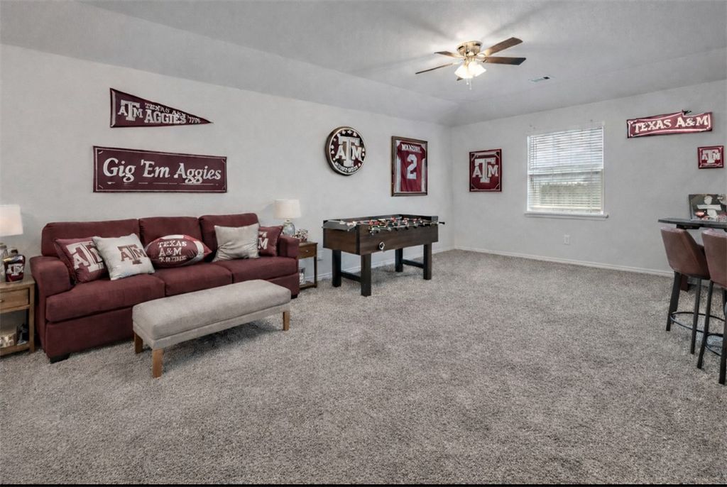 Welcome home to this spacious beauty in the booming Southern Pointe community of South College Station! With 2,572 square feet, a gigantic game room, & a floor plan designed for both everyday living & entertaining, this home truly has it all. Downstairs, you'll love the large open concept kitchen, living, & dining area featuring durable vinyl plank flooring, a huge kitchen island with breakfast bar, gorgeous white cabinetry, stunning subway tile backsplash, & beautiful designer lighting and fixtures. There's an abundance of counter space and storage, making this kitchen the heart of the home perfect for hosting & making memories. The primary suite is generously sized & includes a unique pop out flex space, ideal for a cozy reading nook, sitting area, or even a home office. The ensuite bath offers dual sinks, a luxurious soaking tub, & a beautifully tiled walk-in shower. Upstairs, you'll find three spacious secondary bedrooms, a shared full bathroom, & a massive game room. Step outside to enjoy the covered back patio, perfect for relaxing or entertaining. Located in Southern Pointe, residents enjoy fantastic community amenities, including a resort-style swimming pool, pickleball courts, dog park, &the convenience of its own MUD. This ideally situated in South College Station, just 5 minutes to H-E-B at Tower Point, 4 minutes to Pebble Creek Elementary, & close to shopping, dining, medical facilities, and everything Aggieland has to offer. This is what you've been waiting for!
