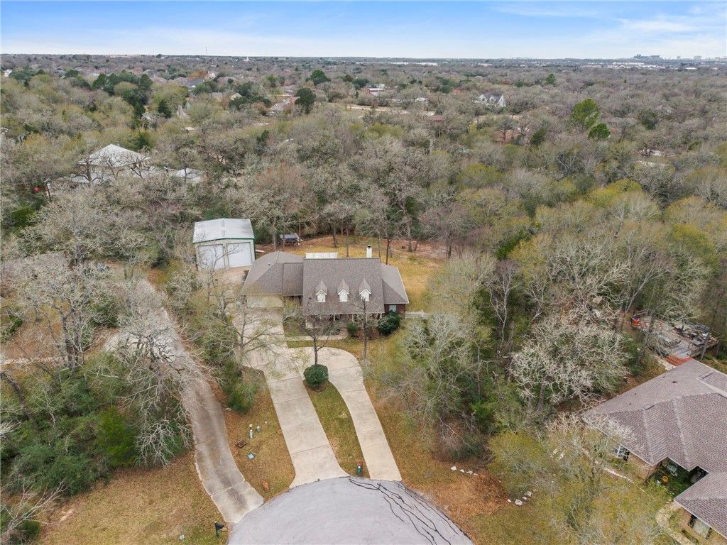 Nestled on a quiet, tree-filled cul-de-sac in the desirable Fox Fire Estates, this beautifully landscaped Southern Living-style home sits on an impressive 1.5-acre lot offering exceptional privacy and a true nature retreat. The backyard is a wildlife lover's dream, with frequent sightings of deer and abundant wildlife, along with three walking paths and two scenic bridges that enhance the peaceful setting. Outdoor living shines with a covered deck and welcoming front porch, while a huge separate metal building provides endless possibilities for a workshop, man cave, or RV storage, in addition to a 2-car garage. Inside, the home features 4 bedrooms, 2.5 bathrooms, a spacious living room with a wood-burning fireplace, two dining areas, and a recently remodeled primary bathroom. Conveniently located near Rock Prairie Road, 1007 Falcon Circle offers serene country-style living with easy access to town.