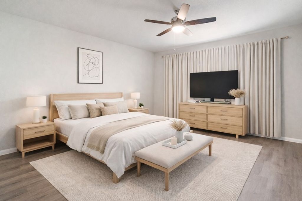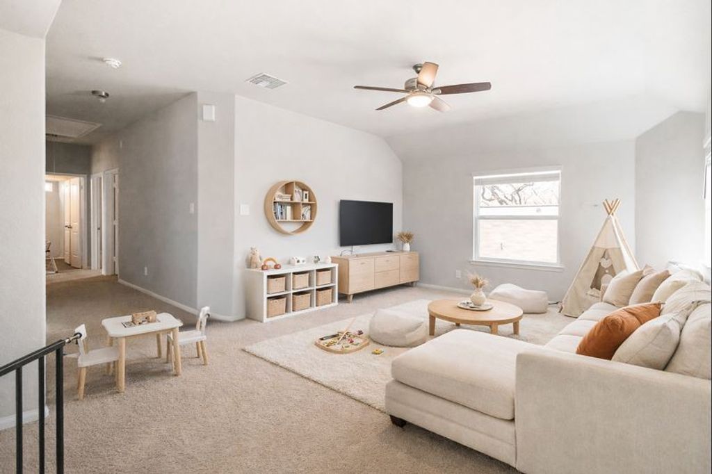 Built in 2022, this two-story home offers approximately 2,628 square feet with 5 bedrooms and 3.5 bathrooms and a functional layout designed for everyday living. The open-concept main floor connects the living, dining, and kitchen areas, providing flexible space for gathering and entertaining. This listing contains virtually staged images. Virtual staging is for visualization purposes only. No furniture, décor, or other personal property shown in staged images conveys with the sale. Buyers should verify the property's current condition during showings. The kitchen includes granite countertops, tile backsplash, stainless steel appliances, and ample cabinet storage. The first-floor primary suite features a walk-in closet and an en-suite bath with dual vanities, separate shower, and soaking tub. Upstairs offers additional bedrooms plus a second living or game room that can serve as a media room, office, or multipurpose space. Additional features include a brick exterior, energy-efficient construction, 2-car attached garage, fenced backyard, and sprinkler system. Located in the Alamosa Springs subdivision with convenient access to shopping, dining, and major thoroughfares. Buyer to independently verify square footage, schools, and property details.