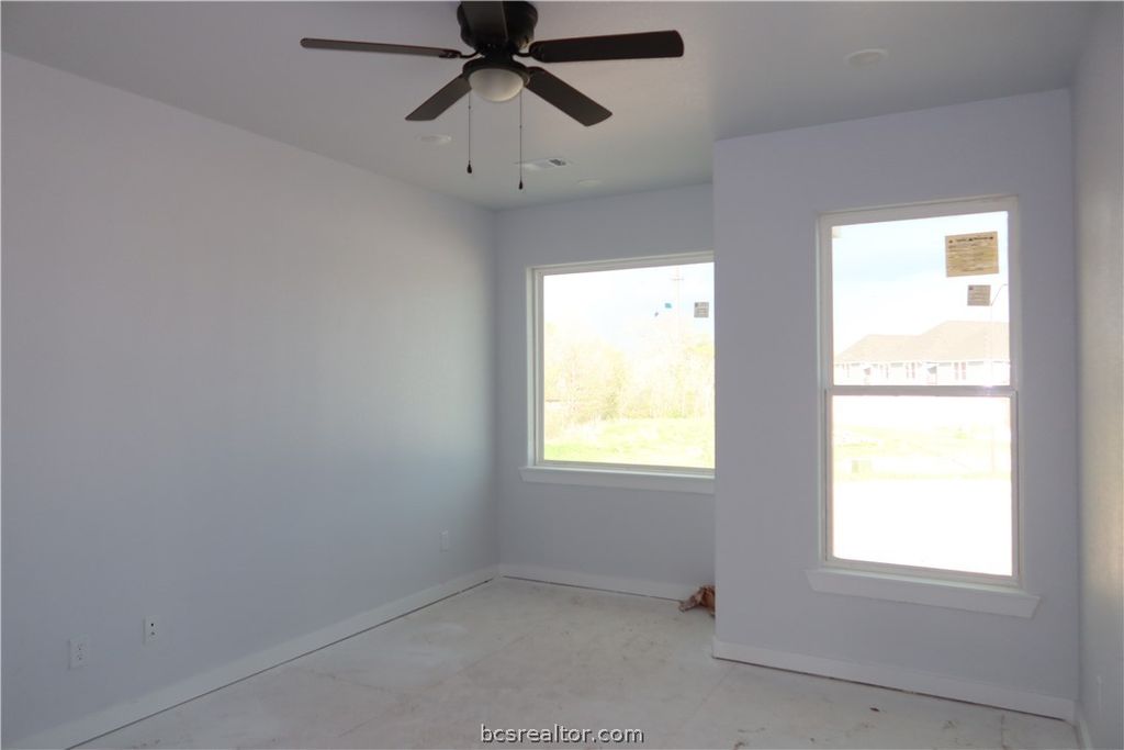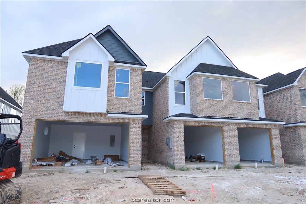 New construction townhome in the heart of College Station. Contemporary 3BR/3.5BA townhome with 1-car garage and extended driveway, minutes from Texas A&M, shopping, dining, and entertainment. Bright open-concept layout with high ceilings and oversized windows. Modern island kitchen with quartz countertops and stylish cabinetry. Main level living area with half bath. Upstairs features three spacious bedrooms, each with private bath and walk-in closet, ideal for roommates. Luxury vinyl plank flooring throughout, including stairs, no carpet. Energy-efficient 16 SEER2 HVAC, two-zone climate control, programmable thermostats, and ceiling fans throughout. Property is preleased from August 2026 to July 2027.